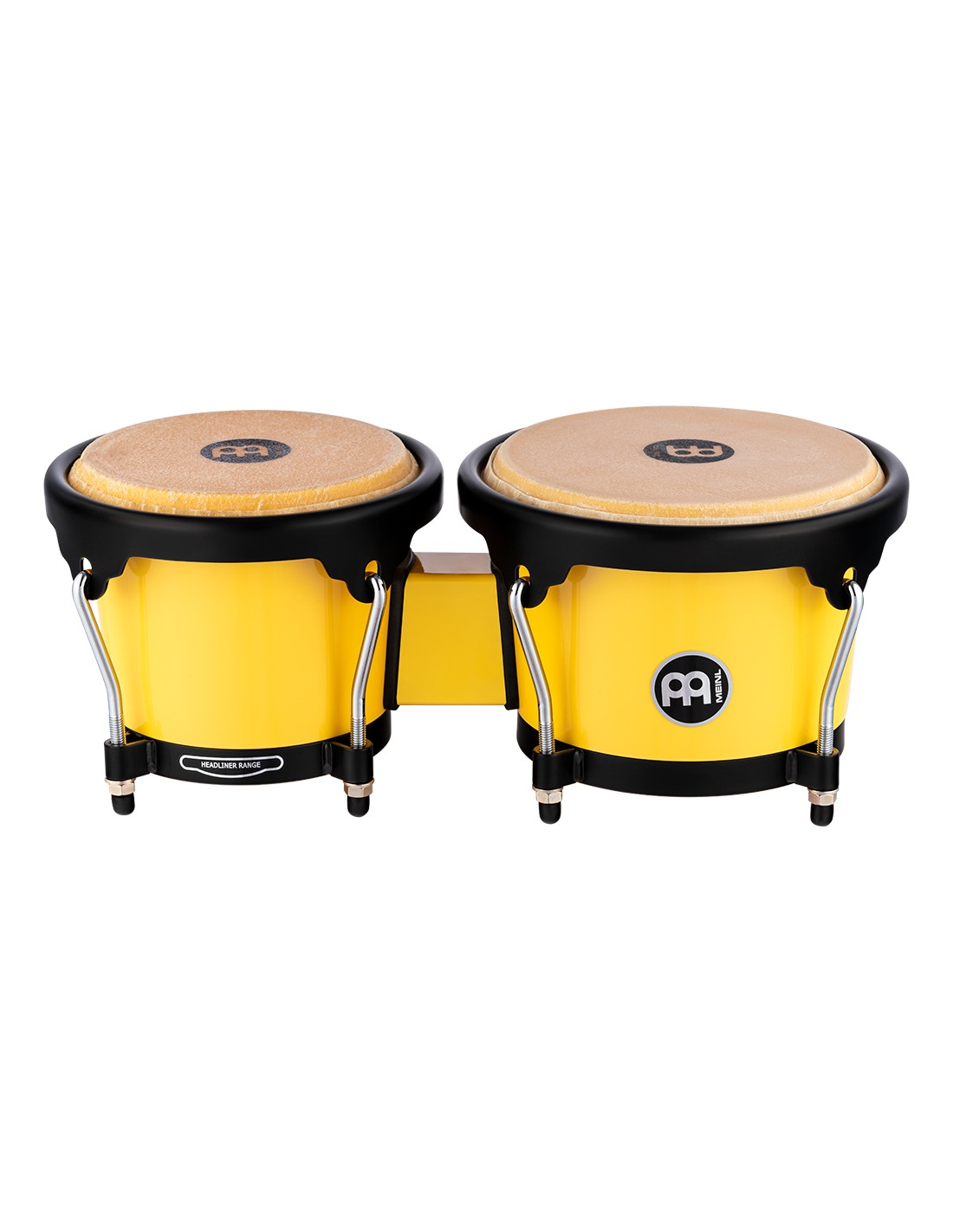 BONGOS 'Bongó en abs acabado en amarillo luminoso con medidas 6 1/2'' & 7 1/2''. El hardware es todo negro. Parches de piel de búfalo seleccionados a mano.