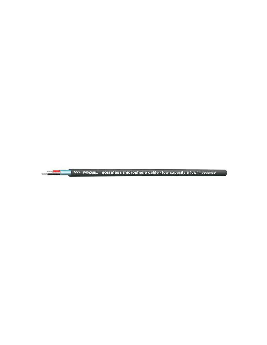 CABLE DE MICROFONO Cable de micrófono balanceado para instalación con cubierta exterior de PVC 80 apantallada de aluminio con diámetro reducido. Conductor de 2 x 0,22mm. Diámetro exterior 4mm. Hilo de drenaje de 0,22mm. Color negro.