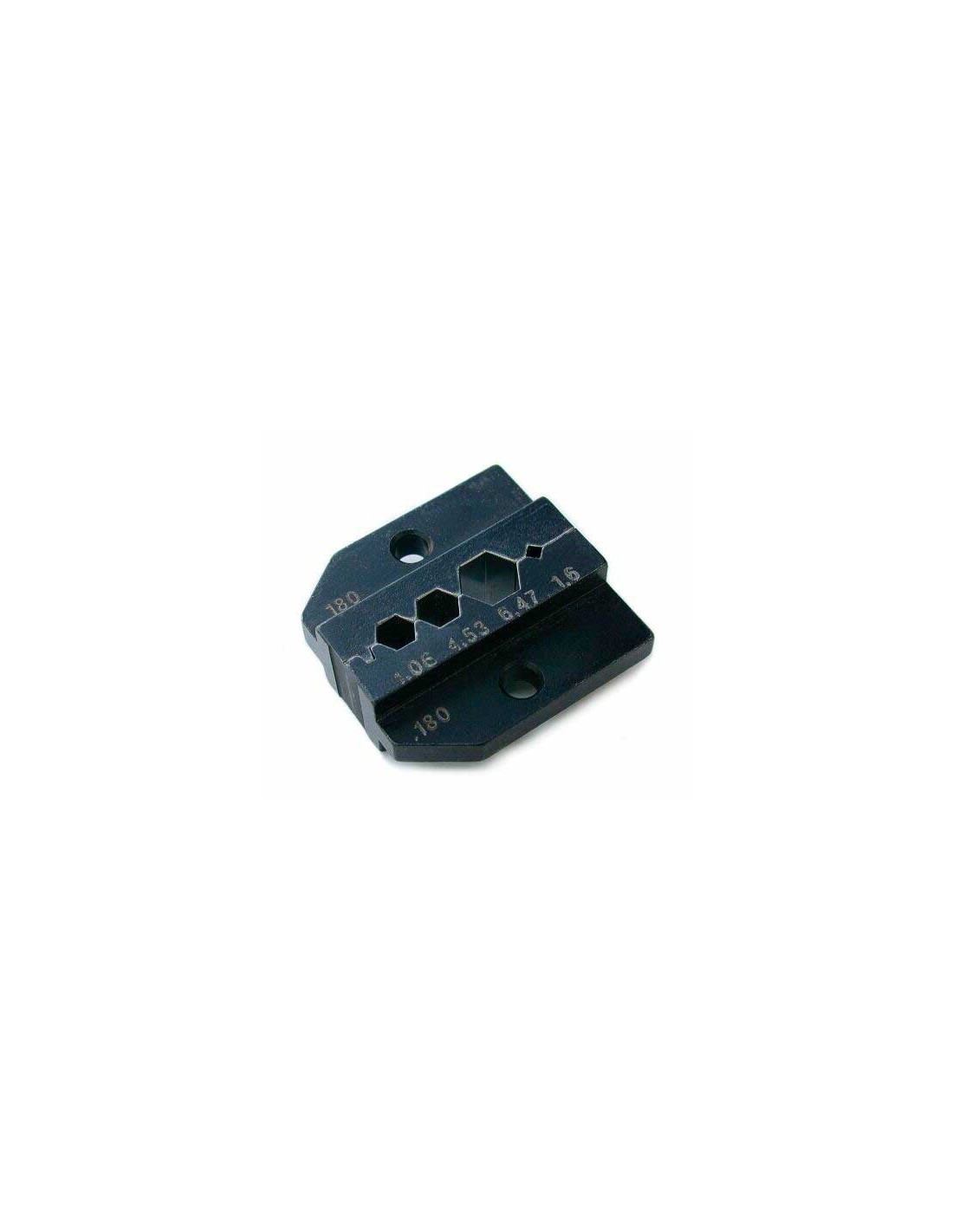 Herramienta de troquelado por crimpado para HX-R-BNC.Crimpado del pin: 1.60 mmCrimpado del blindaje y cubierta: crimpado HEX de 6.47 mm (A), 4.53 mm (B), 4.06 mm (C)