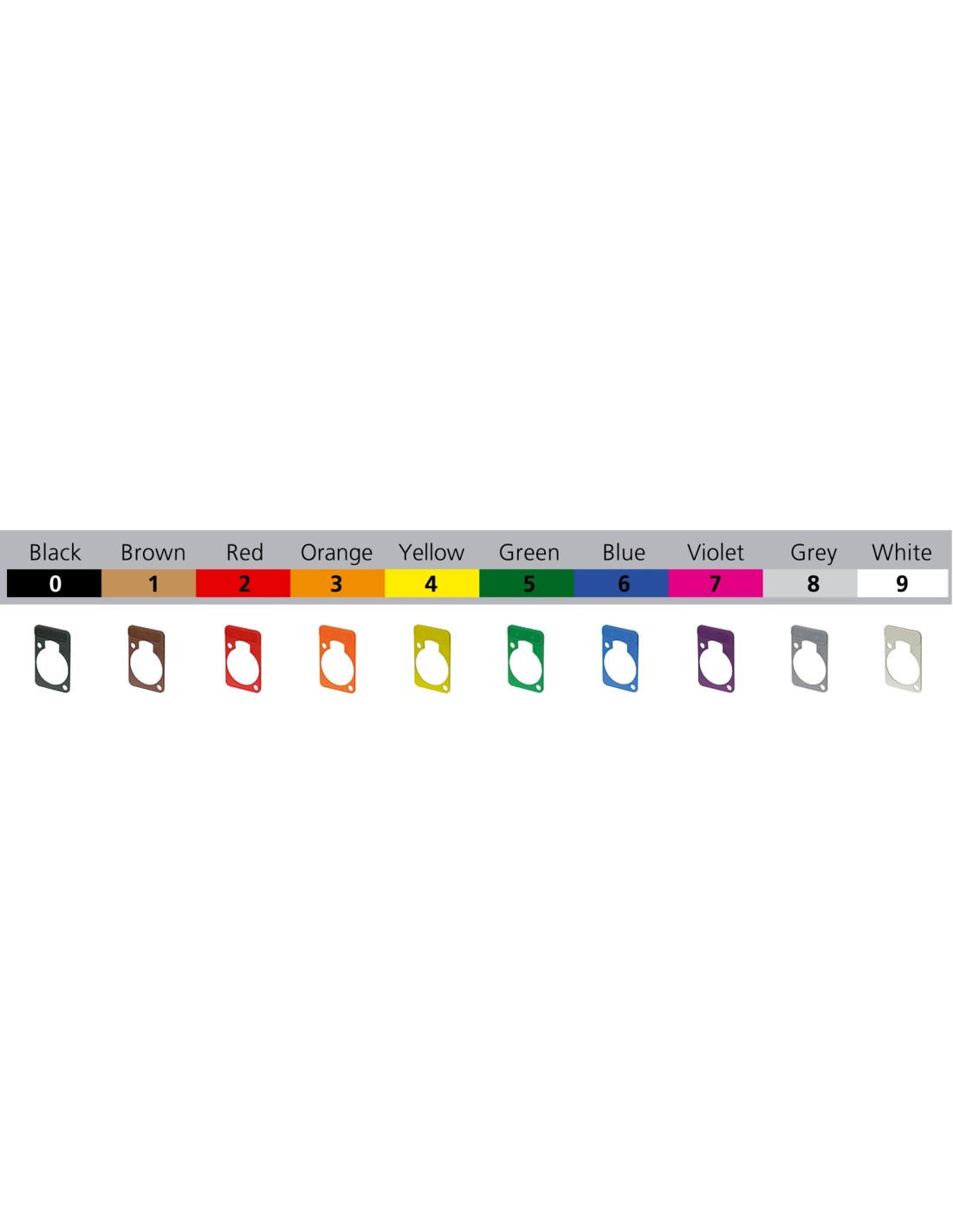 Placa de identificación por colores para conectores la serie D. Material: poliamida (PA 6 15 % GR). Inflamabilidad UL 94 HB. Color: negro.