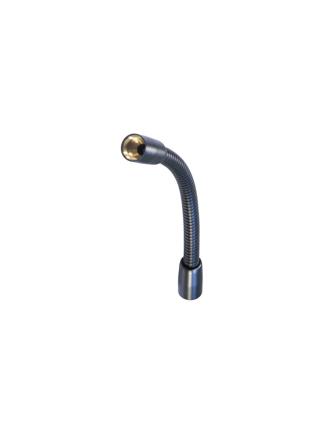 Soporte de cuello de cisne. Para un montaje flexible y seguro de micrófonos y lámparas, entre otros. Sistema versátil y modular que permite todo tipo de combinaciones. Fabricado con una espiral de acero inoxidable duradera. Acabado negro antirreflectante. No se oxida y no produce ruido. Longitud: 230 mm, diámetro de 12 mm. No incluye conector XLR, sólo cuello de cisne. Con rosca interior M17 en ambos extremos.