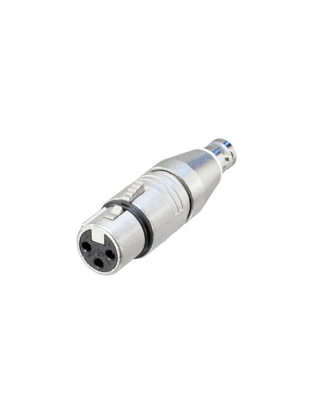 Adaptador XLR hembra de 3 pines a BNC hembra. Serie NA. Color: níquel. Adaptador versátil, precableado y listo para usar. Diseño profesional y compacto que ahorra espacio, basado en la serie X. BNC cableado según la norma IEC 268-12. Resistente carcasa de fundición a presión para una mayor fiabilidad. Pin 2: señal. Pines 1 y 3: conectados a tierra.