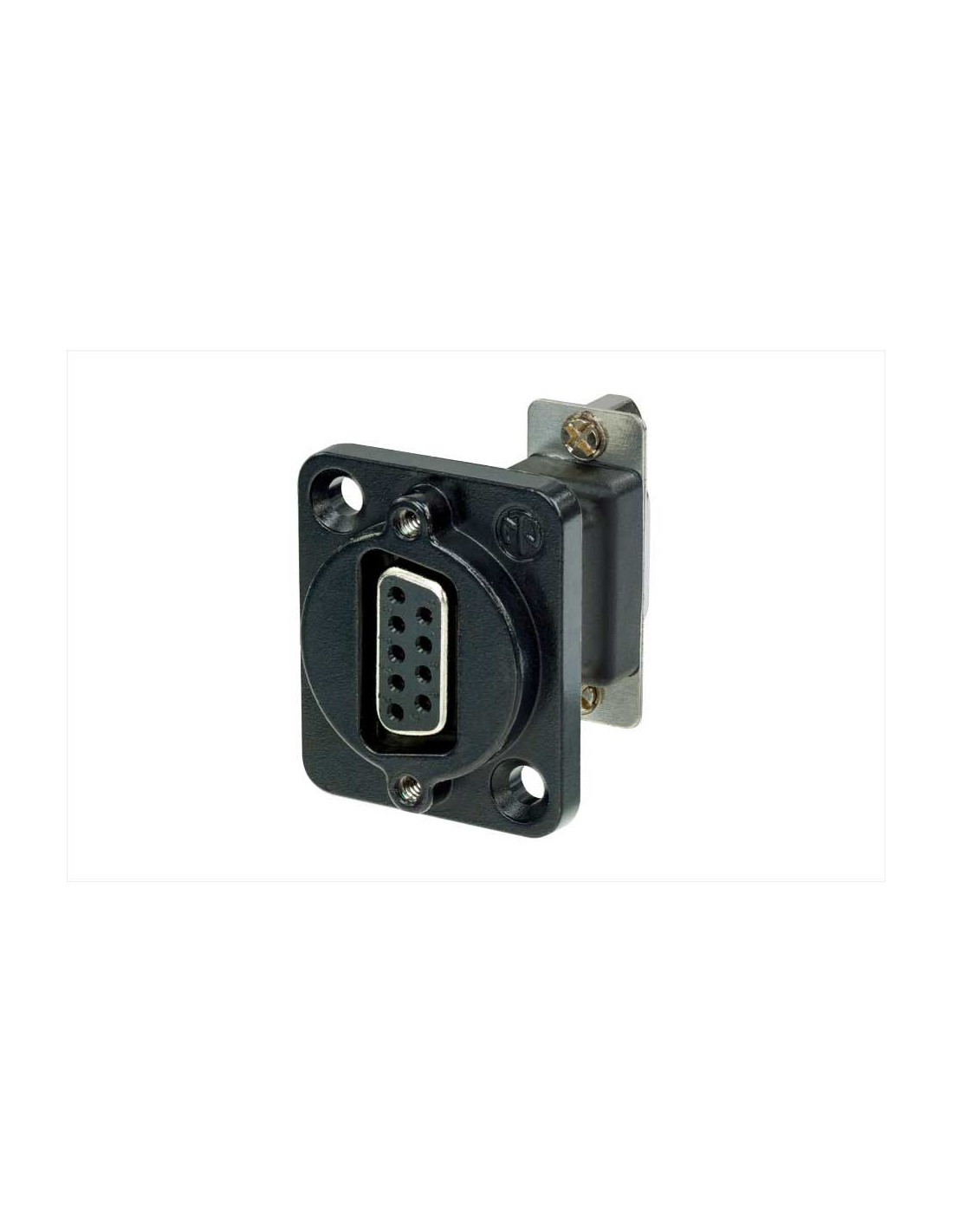 Conector de chasis D-SUB hembra a hembra de 9 pines. Adaptador paso a través para conversión de género. Serie NAD. Color: negro, contactos en oro. Chasis en forma de D estándar. Ideal para redes de audio e integración de equipos en sistemas de vídeo. Especificaciones mecánicas: espesor del panel de 4 mm. Materiales: carcasa de zinc, inserto de acero estañado y PBT. Especificaciones ambientales: inflamabilidad UL 94-V0, rango de temperatura -25 °C a +80 °C.