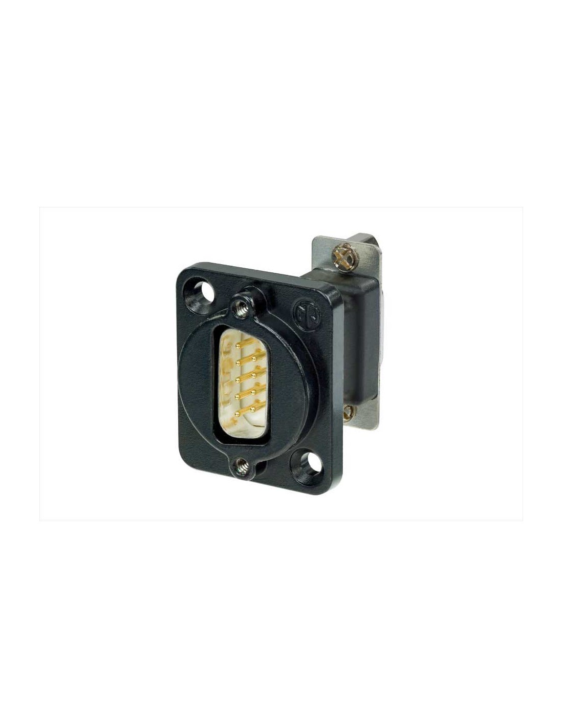 Conector de chasis D-SUB macho a hembra de 9 pines. Serie NAD. Color: negro, contactos en oro. Chasis en forma de D estándar. Ideal para redes de audio e integración de equipos en sistemas de vídeo. Especificaciones mecánicas: espesor del panel de 4 mm, cableado paso a través. Materiales: carcasa de zinc, inserto de acero estañado y PBT. Especificaciones ambientales: inflamabilidad UL 94-V0, rango de temperatura -25 °C a +80 °C.