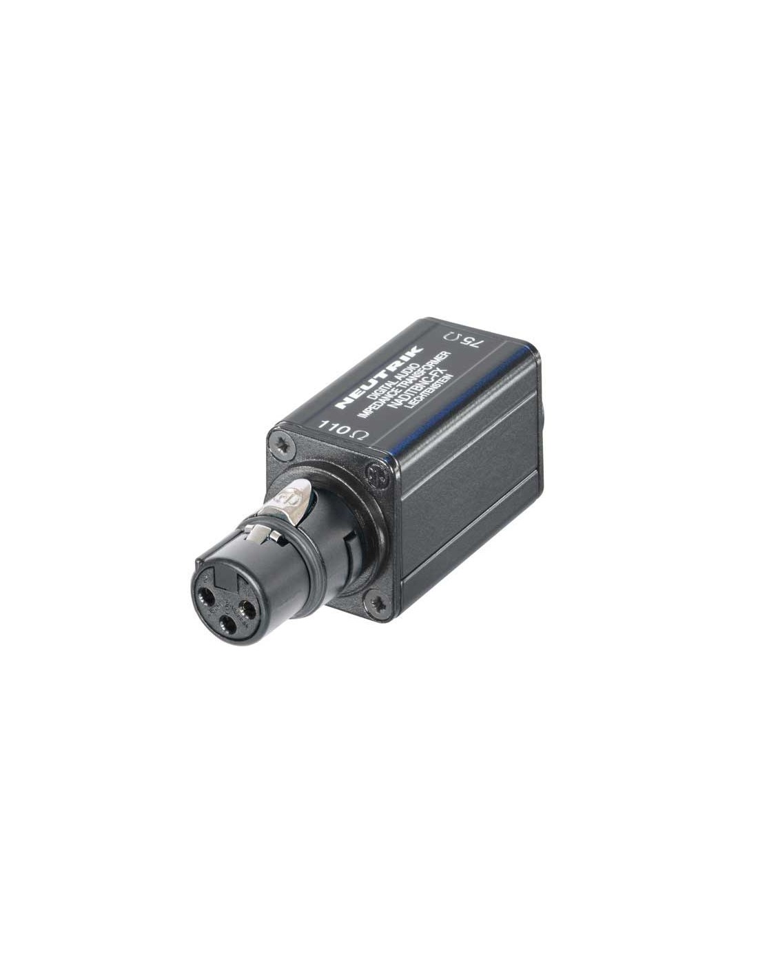 Adaptador XLR hembra aéreo de 3 pines 110 ohmios (entrada) a BNC hembra de 75 ohmios (salida). Serie NAD. Color: negro. Interfaz líneas balanceadas y coaxiales. Permiten largas tiradas de cable para señales de audio digital a través de líneas coaxiales de baja atenuación. Emparejan líneas balanceadas a coaxiales. Emparejan impedancias de 110 ohmios a 75 ohmios. Sencillez de uso, unidades pasivas