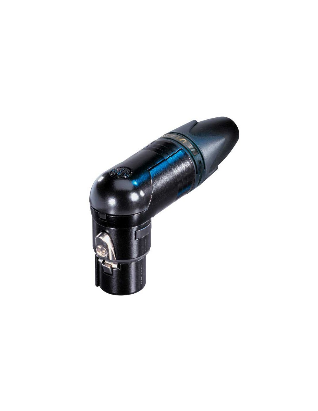 Conector aéreo XLR hembra de ángulo recto de de 8 + 2 pines. Serie RX. Color: negro, contactos en oro. Adecuado para transmisión de datos con especificaciones CAT 5e y alimentación de hasta 16 A y 50 V, superando las capacidades de PoE+. Mayor robustez en comparación con los conectores tipo RJ45. La carcasa completamente metálica ofrece la mejor protección general contra RF y un mayor blindaje electromagnético. Especificaciones mecánicas: diámetro exterior del cable 8,0 - 10,0 mm, dispositivo de bloqueo mediante cerradura de pestillo. Materiales: caperuza de PA/PU, carcasa de zinc con recubrimiento de cromo negro. Especificaciones ambientales: clasificación de inflamabilidad UL 94 V-0, cumplimiento de normas IEC 68-2-20, grado de protección IP 40, rango de temperatura -30 °C a +80 °C.