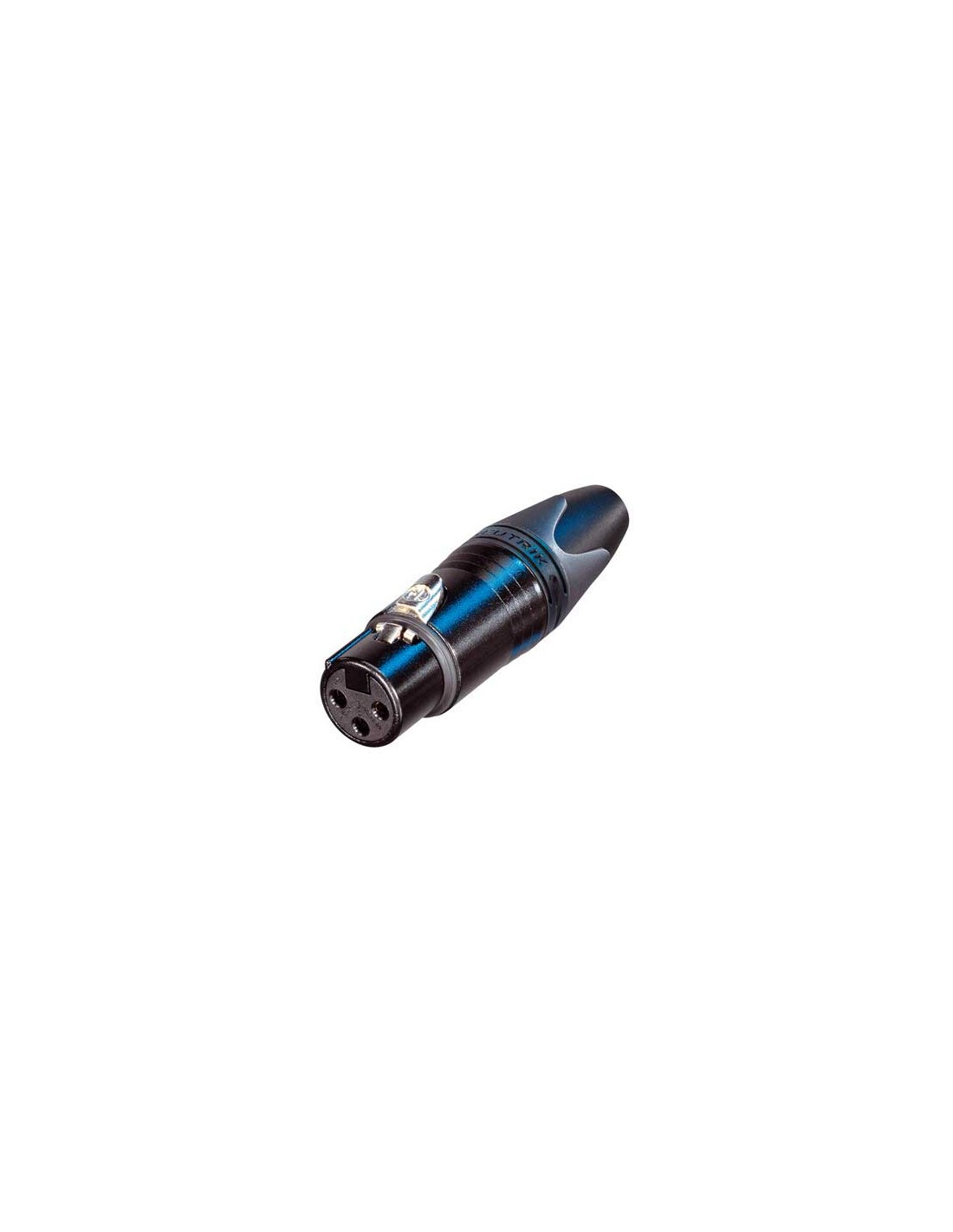 Conector aéreo XLR hembra de 3 pines. Serie XX. Color: negro, contactos en oro. Mayor fiabilidad y facilidad de montaje. Diseño único del pin de contacto hembra para una baja resistencia de contacto y una alta integridad, con barrera de soldadura. Prensaestopas de poliuretano que proporciona una alta protección contra tensiones del cable. Especificaciones mecánicas: diámetro exterior del cable 3,5 - 8,0 mm, sistema de bloqueo mediante cerradura de pestillo. Materiales: caperuza de poliuretano, carcasa de zinc. Especificaciones ambientales: inflamabilidad UL 94 V-0, cumplimiento de normas IEC 61076-2-103, protección IP 40, rango de temperatura -30 °C a +80 °C.