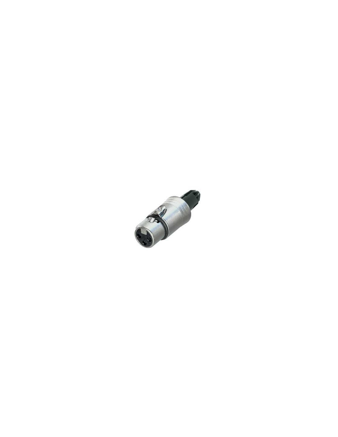 Conector aéreo XLR hembra de 3 pines. Serie XX. Color: níquel, contactos en plata. Sin caperuza (debe pedirse por separado). Mayor fiabilidad y facilidad de montaje. Diseño único del pin de contacto hembra para una baja resistencia de contacto y una alta integridad, con barrera de soldadura. Prensaestopas de poliuretano que proporciona una alta protección contra tensiones del cable. Especificaciones mecánicas: diámetro exterior del cable 3,5 - 8,0 mm, sistema de bloqueo mediante cerradura de pestillo. Materiales: carcasa de zinc. Especificaciones ambientales: inflamabilidad UL 94 V-0, cumplimiento de normas IEC 61076-2-103, protección IP 40, rango de temperatura -30 °C a +80 °C.