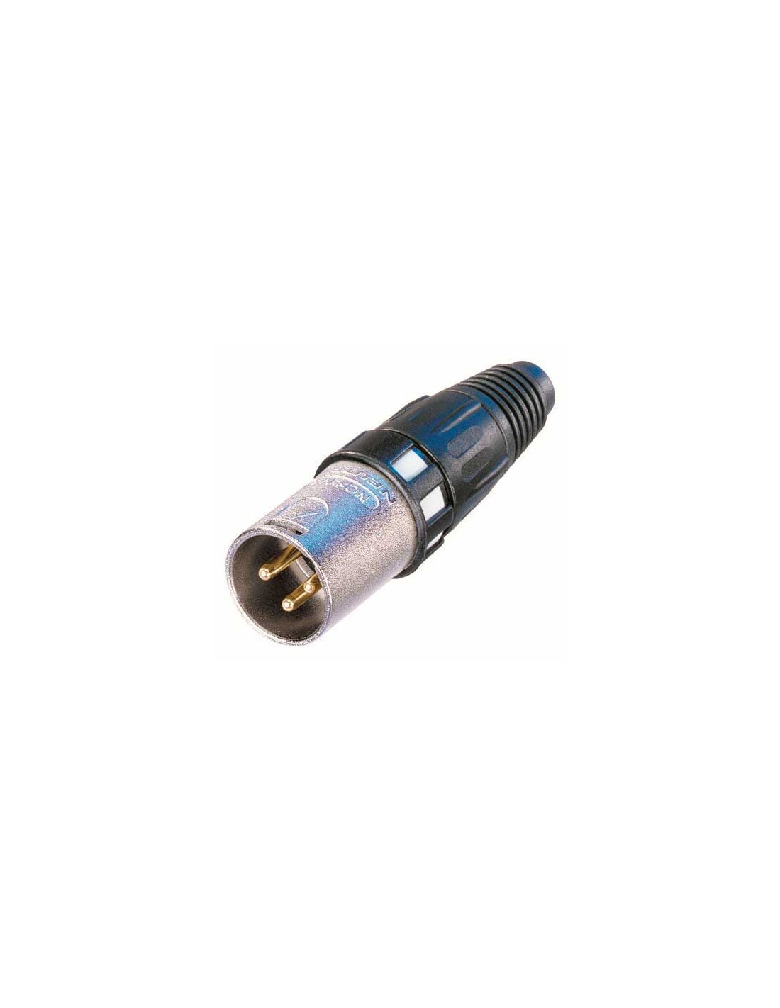Conector aéreo XLR macho de 3 pines. Serie X-CC. Color: níquel, contactos en oro. Contacto de apantallamiento circular para una mejor protección contra interferencias electromagnéticas. Ideal pata transmitir señales de audio digital de forma eficaz y fiable. Incluye anillo de codificación XCCR para indicar señales digitales AES. Sistema de alivio de tensión tipo mandril para una sujeción segura de los cables. Especificaciones mecánicas: diámetro exterior del cable 5,4 - 6,2 mm, contactos de soldadura, sistema de bloqueo mediante cerradura de pestillo. Materiales: caperuza de poliuretano, carcasa de zinc. Especificaciones ambientales: inflamabilidad UL 94 V-0, cumplimiento de normas IEC 61076-2-103, protección IP 40, rango de temperatura -30 °C a +80 °C.
