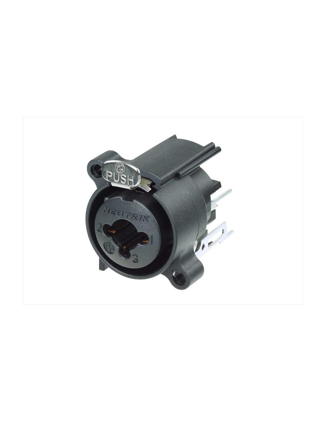 Conector de chasis combo XLR hembra de tres pines con TRS 1/4 hembra. Serie: Combo A. Color: negro, contactos en oro. Montaje vertical en PCB. Recorte del panel frontal compatible con Neutrik XLR A Series. Diseñado para entradas balanceada de micro, señal de línea o instrumento en una sola carcasa XLR. Permite ahorrar espacio al combinar 2 conectores en una sola carcasa. Carcasa XLR de dimensiones más reducidas. Conductor de muy baja capacitancia, por lo que resulta adecuado para audio digital. Especificaciones mecánicas: dispositivo de bloqueo mediante cerradura de pestillo. Materiales: carcasa de poliamida. Especificaciones ambientales: inflamabilidad UL 94 V-0, protección IP 40, rango de temperatura -30 °C a +80 °C.