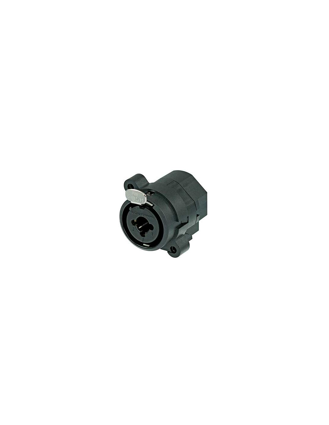 Conector de chasis combo XLR hembra de tres pines con TRS 1/4 hembra conmutable. Serie: Combo I. Color: negro, contactos en oro. Copas de soldadura. Entradas balanceadas o de línea en un solo receptáculo XLR. Permite ahorrar espacio al combinar 2 conectores en una sola carcasa. Conductor de muy baja capacitancia, por lo que resulta adecuado para audio digital. Especificaciones mecánicas: dispositivo de bloqueo mediante cerradura de pestillo. Materiales: carcasa de poliamida. Especificaciones ambientales: inflamabilidad UL 94 V-0, protección IP 40, rango de temperatura -30 °C a +80 °C.