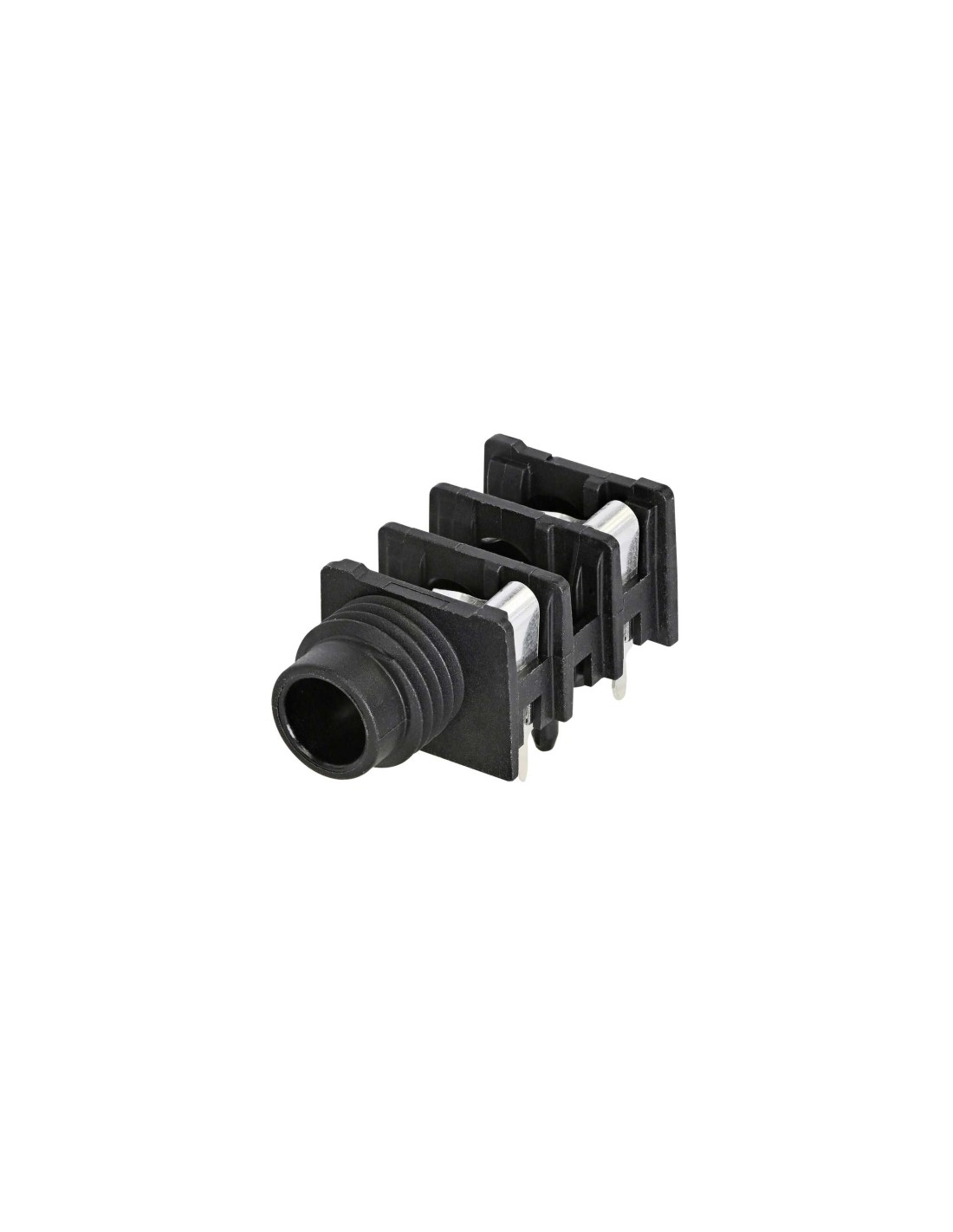 Conector de chasis jack hembra 1/4 de 2 pines. Serie: Slim Jack. Color: negro, contactos en plata. Conector mono conmutable, con media punta roscada. Conector de montaje horizontal en panel PCB que ofrece alta densidad de empaquetado en la placa al montarse en centros mínimos de 15.88 mm (0.625 pulgadas) en filas o matrices. El hardware de montaje debe ser pedido por separado. Especificaciones mecánicas: integra muelle de retención que garantiza un agarre óptimo de las clavijas insertadas, evitando la posibilidad de pérdida de conexión. Materiales: carcasa de poliamida. Especificaciones ambientales: norma EIA RS 453, IEC 60603-11, rango de temperatura -25 °C a +70 °C.