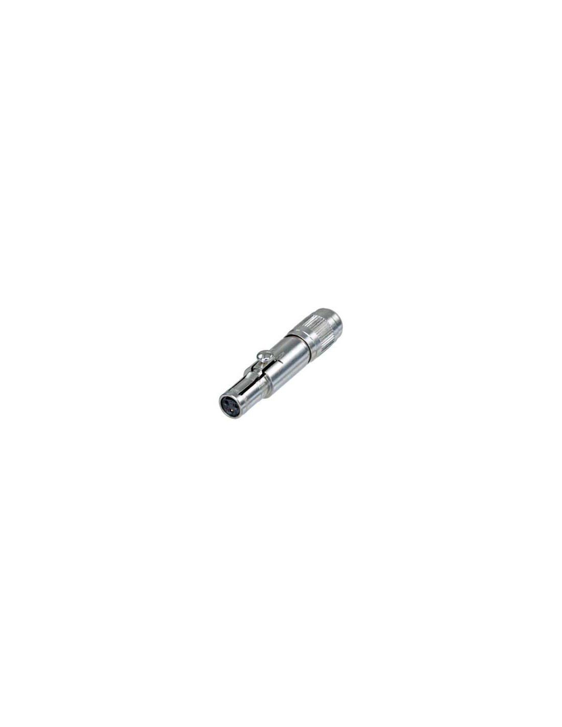 Conector aéreo nanoCON hembra de 3 pines. Serie: nanoCON. Color: níquel, contactos en oro. Conector multipin circular bloqueable de dimensiones extraordinariamente reducidas, con carcasa de metal resistente, dispositivo de bloqueo y una excelente retención de cable. Conector fiable y versátil, adecuado para su uso en aplicaciones relacionadas con equipamiento médico, sistemas de control, sensores o aplicaciones de audio como micrófonos en miniatura e inalámbricos y mezcladores portátiles. Especificaciones mecánicas: sistema de bloqueo mediante cerradura de pestillo. Materiales: carcasa de latón, inserto de PETP. Especificaciones ambientales: inflamabilidad UL 94 V-0, grado de protección IP 40, rango de temperatura -30 °C a +80 °C.