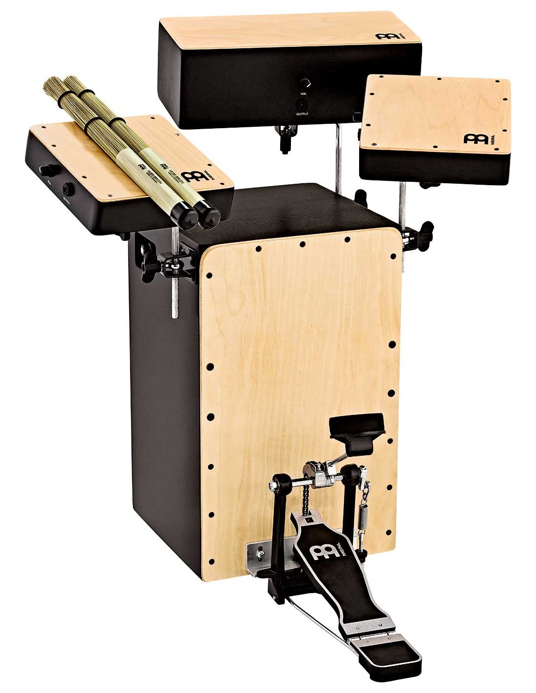 CAJON FLAMENCO Cocktail Cajón Kit. El kit definitivo que combina el sonido agradecido y natural del cajón con la ergonomía de la batería. Todo el kit monta preamplificadores así que podrás conectarlo a tu equipo a través de un sencillo Jack. El conjunto está formado por un cajón, un par de toms, un base así como caja, pedal y escobillas.