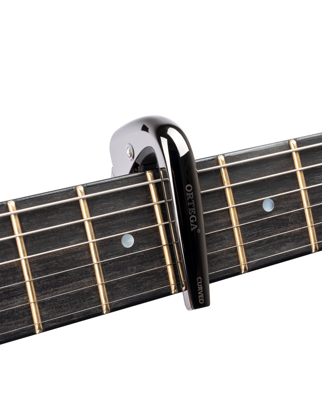 CEJILLA CURVA (ACÚSTICA Y ELÉCTRICA) Nuestras nuevas cejillas True Note son fáciles de usar y proporcionan a tu guitarra una estabilidad de afinación inigualable. Se pueden instalar en un segundo, utilizando su sistema QUICK-LOCK. Su diseño se adapta a casi todos los instrumentos de cuerda, con capacidad para cubrir mástiles de hasta 52 mm de anchura. Diseñado para diapasón curvados, en un elegante acabado cromado negro. Viene en una pequeña bolsa de algodón.