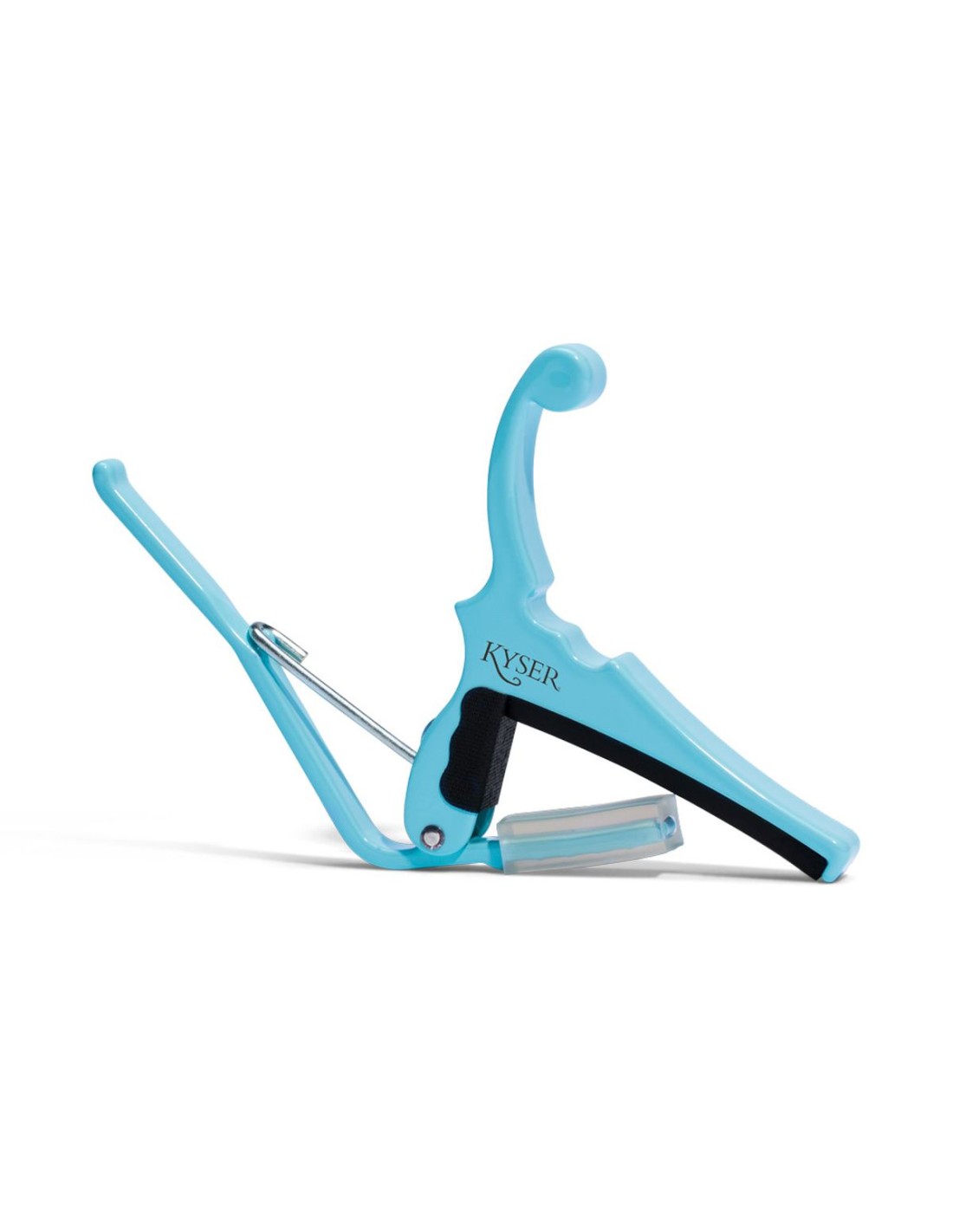 CEJILLA 'Colaboración entre Fender y Kyser- Color clásico Fender años 50 y 60 hecho con el proceso ColorMatch de Pantone- Capo de la serie Quick-Change- Nuevo diseño de radio de 9.5'' que se ajusta a la mayoría de diapasones- Para guitarra acustica y electrica- De aluminio ultra-ligero- Se puede quitar y poner con una mano- Acabado Daphne Blue'