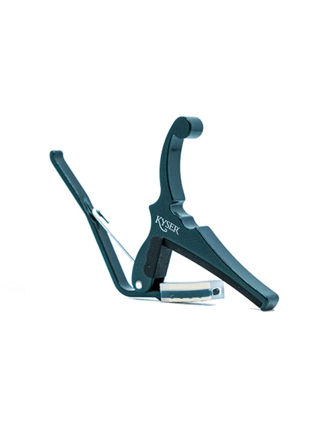CEJILLA 'Colaboración entre Fender y Kyser- Color clásico Fender años 50 y 60 hecho con el proceso ColorMatch de Pantone- Capo de la serie Quick-Change- Nuevo diseño de radio de 9.5'' que se ajusta a la mayoría de diapasones- Para guitarra acustica y electrica- De aluminio ultra-ligero- Se puede quitar y poner con una mano- Acabado Sheerwood Green'