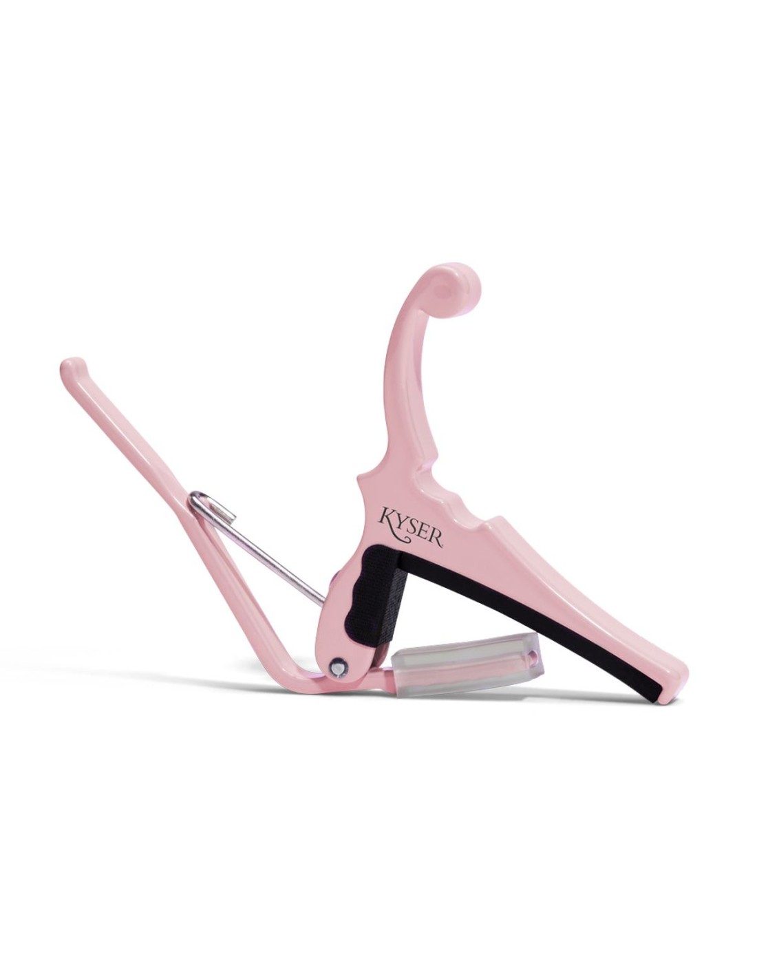 CEJILLA 'Colaboración entre Fender y Kyser- Color clásico Fender años 50 y 60 hecho con el proceso ColorMatch de Pantone- Capo de la serie Quick-Change- Nuevo diseño de radio de 9.5'' que se ajusta a la mayoría de diapasones- Para guitarra acustica y electrica- De aluminio ultra-ligero- Se puede quitar y poner con una mano- Acabado Shell Pink'