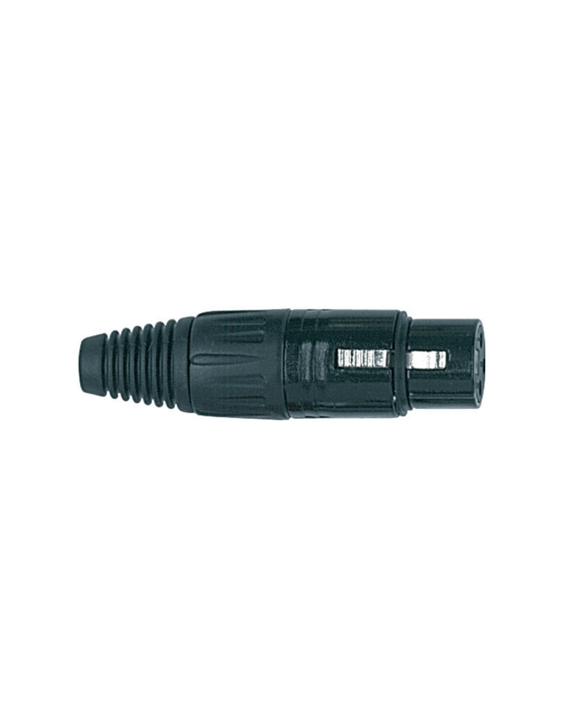CONECTOR XLR Conector XLR hembra metálico de 3 polos. Color niquelado negro.