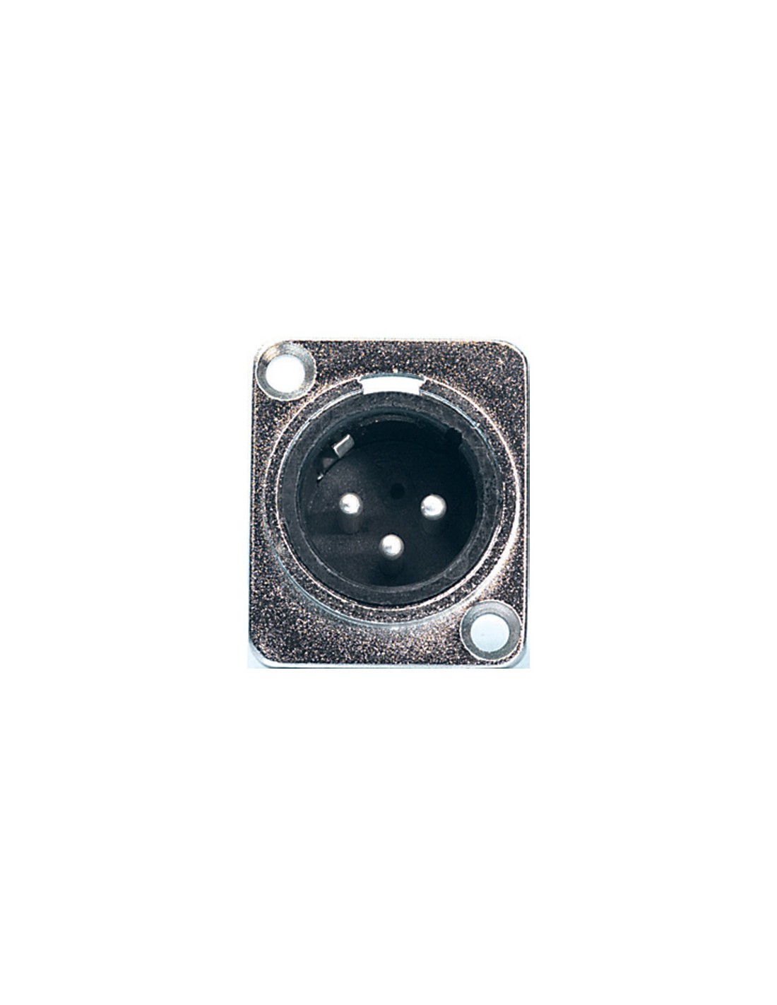CONECTOR XLR Conector XLR macho de panel para soldar en aluminio de 3 polos con presilla. Color niquelado.