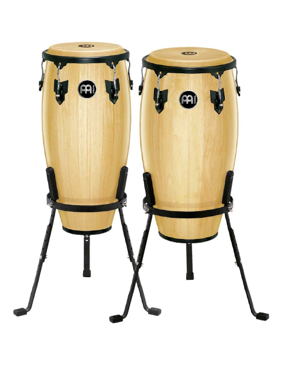 CONGAS 'Se de congas acabado Natural (11'' y 12''). Las congas Headliner de Meinl hechas en madera de roble de Siam son la pareja perfecta. Montan parches de piel de búfalo seleccionada a mano y traen los stands individuales acabados en negro.