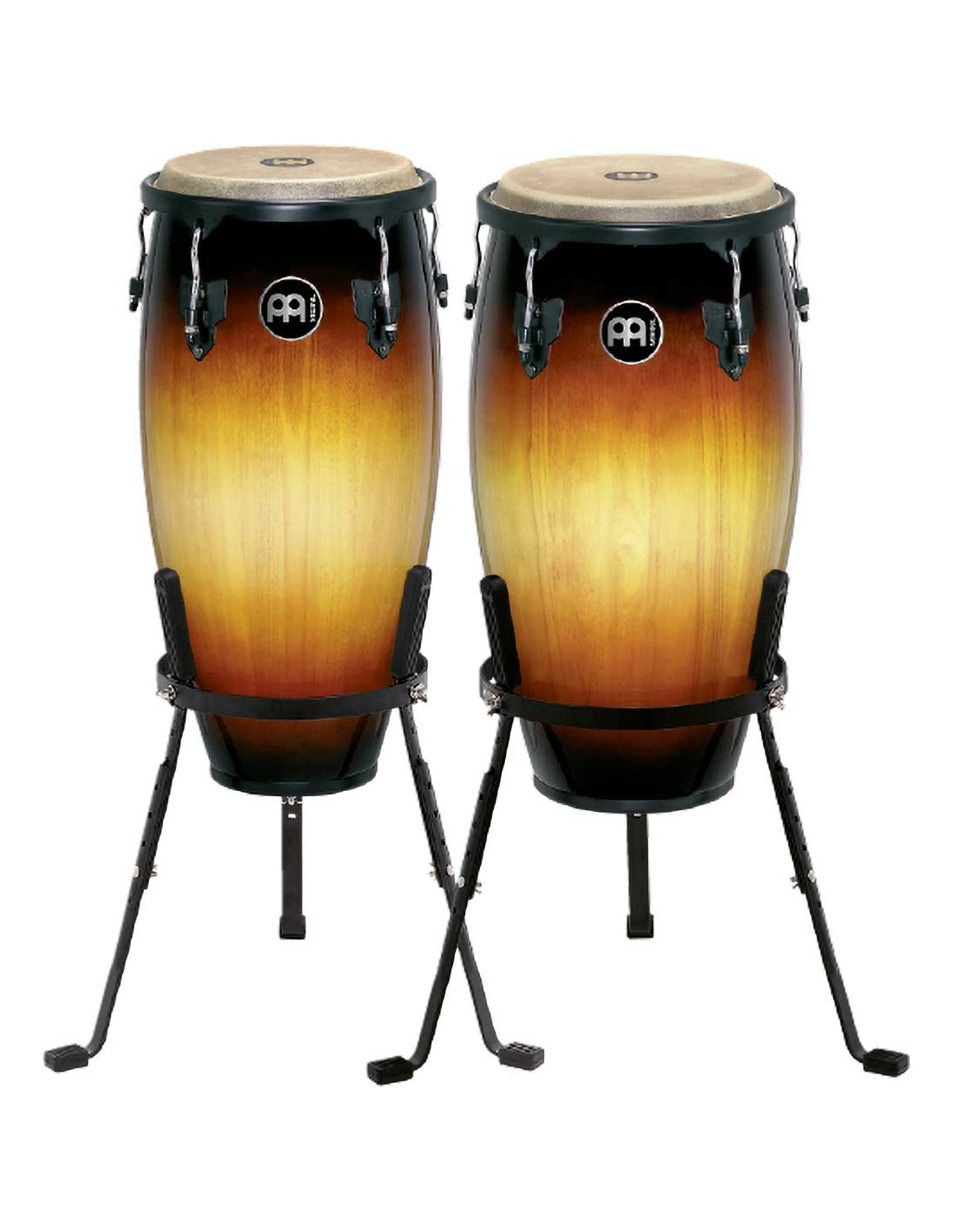 CONGAS 'Se de congas acabado Vintage Sunburst (11'' y 12''). Las congas Headliner de Meinl hechas en madera de roble de Siam y son la pareja perfecta. Montan parches de piel de búfalo seleccionada a mano y traen los stands individuales acabados en negro.