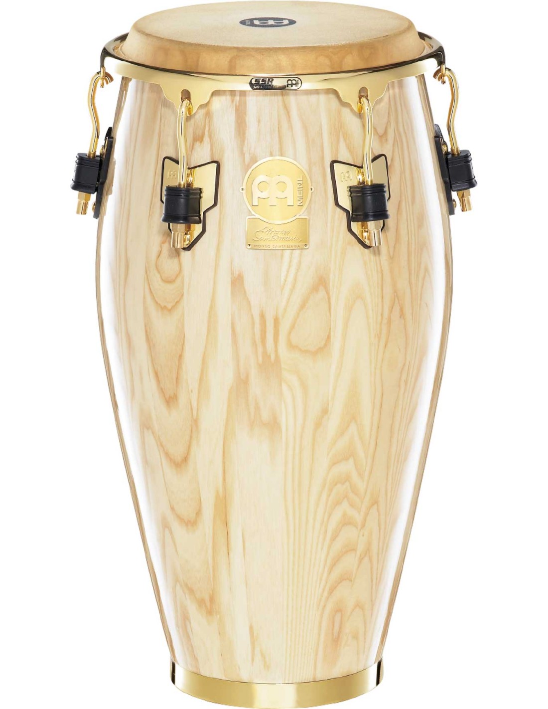 CONGAS 'Conga 11 3/4'' Serie Artist: Mongo Santamaria. Con unos cascos hechos en fresno americano y parches True Skin Buffalo de MEINL estas congas te ofrecen un tono redondo y profundo. Las pieles que montan los parches son seleccionadas a mano por expertos. El hardware dorado le dan una presencia espectacular y los aros ''Safe Sound'' ofrecen una un golpeo ergonómico al tocar.