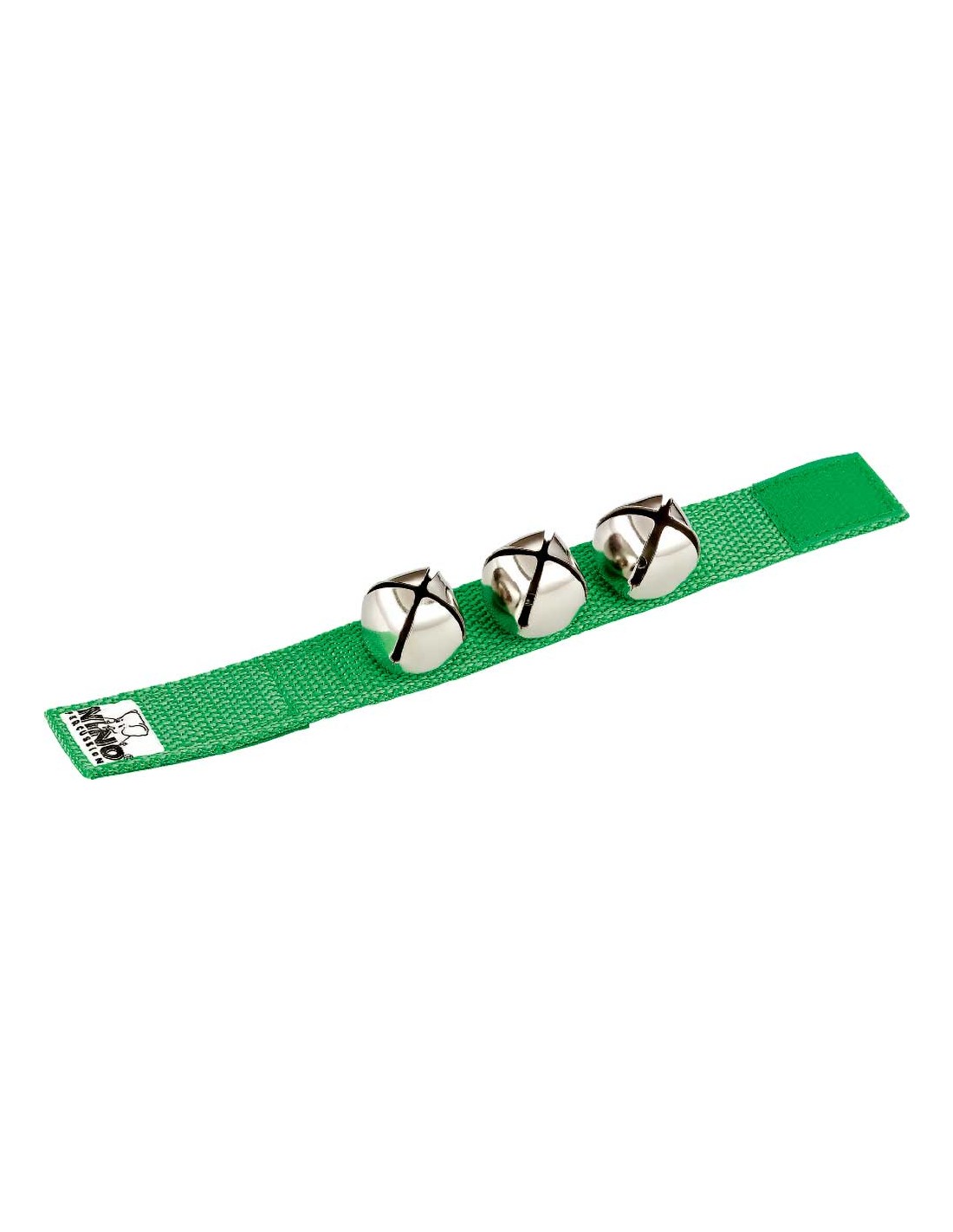 CORONA DE CASCABELES El Brazalete de cascabeles NINO® cuenta con una correa de nylon suave y confortable y con tres cascabeles. Los niños pueden llevarlo alrededor de su muñeca o envuelto alrededor de la mano para hacer música donde quiera que vayan. Verde.