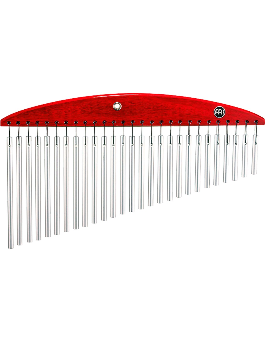 CORTINILLA (CHIMES) Cortinilla cortina simple de 27 barras, roja. 27 barras de aluminio con revestimiento de aleación de plata. Base superior de madera lacada en color rojo.