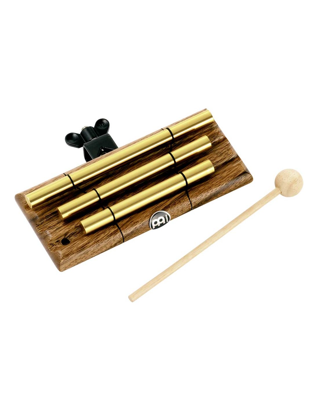 CORTINILLA (CHIMES) Campana tubular de madera de tres tonos. Tres barras afinadas. Aleación de aluminio anodizado en soporte de madera. Las tres barras flotantes crean un gran sustain y coinciden tonalmente.