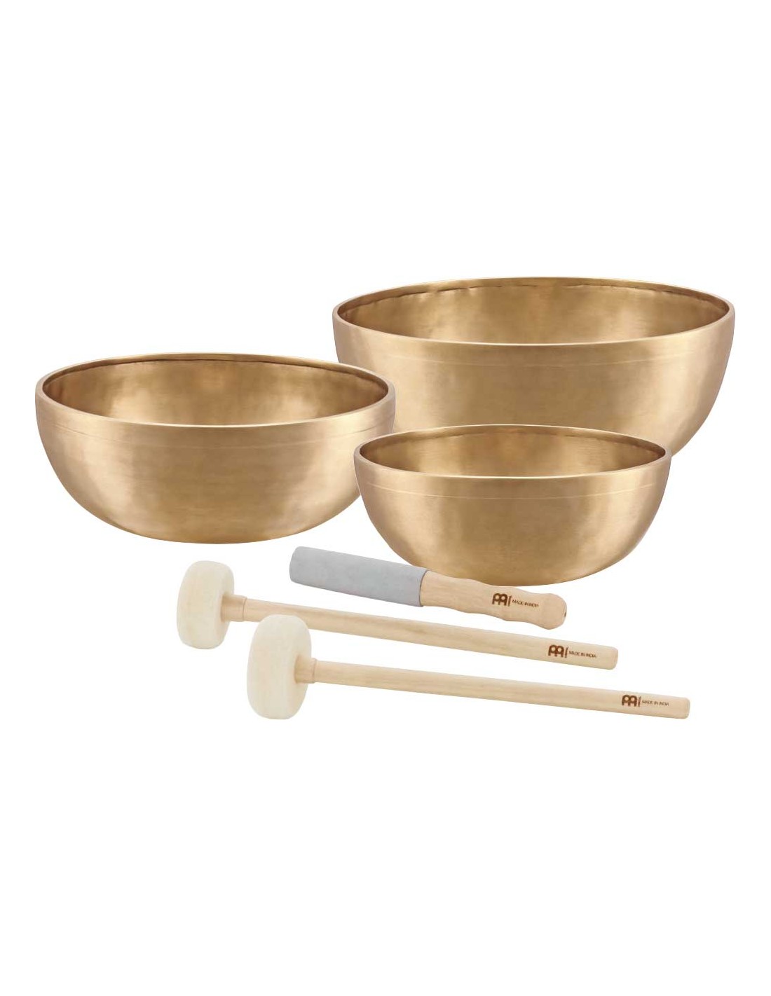 CUENCOS TIBETANOS SB-E-5400 3 pcs. set. Los cuencos tibetanos de la serie Energy de Sonic Energy están hechos de manera artesanal en la India en una aleación especial de bronce. Son perfectos para colocarlos sobre el cuerpo en sesioes de masaje. El aro reforzado produce un tono agudo al principio que se torna mucho más profundo en una segunda fase. Incluyen funda y aro de fieltro.