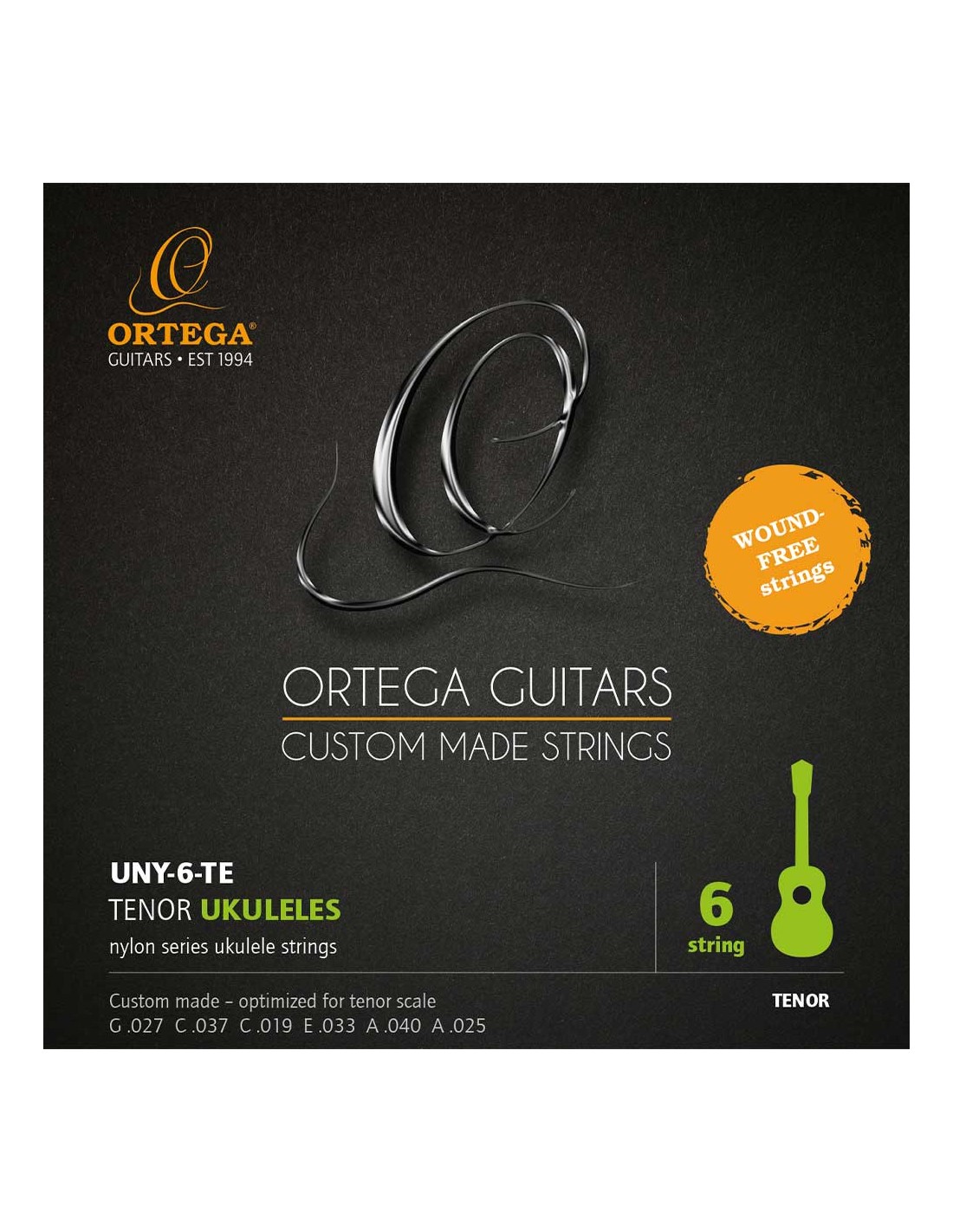 JUEGO CUERDAS UKELELE Juego de cuerdas de ukelele tenor UNY-6-TE para modelos de 6 cuerdas (primera y tercera cuerda dobladas). Fabricadas en Italia en colaboración con Aquila. Sonido meloso pero con pegada. Gran proyección, afinación precisa, gran establilidad y comodidad. Compatibles con ukelele Ortega Eclipse-TE6 y ukes tenores de 6 cuerdas de otras marcas.