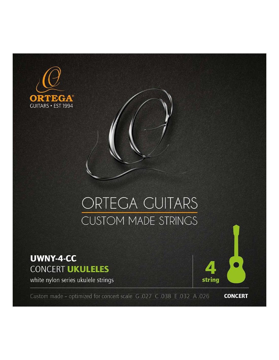 JUEGO CUERDAS UKELELE Las cuerdas de ukelele de la serie de ''white nylon'' de Ortega Guitars se desarrollan en cooperación con el mundialmente famoso fabricante Italiano de cuerdas de ukelele: AQUILA. La combinación de materiales utilizados para su fabricación está especialmente diseñada para ofrecer un balance perfecto entrte tono cálido y ataque contundenteFabricadas en ItaliaCombinación perfecta de tono cálido con ataque contundenteJuego optimizado para ukeleles de escala concierto