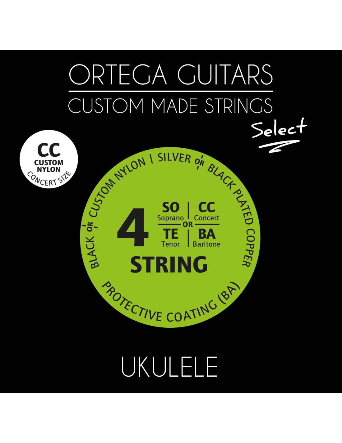 JUEGO CUERDAS UKELELE Las cuerdas ORTEGA Select para uke están fabricadas con técnicas exclusivas de bobinado y pulido. Los materiales superiores utilizados para su fabricación son de alta tecnología y aseguran un sonido tradicional intenso y cálido con un distintivo timbre brillante. El nylon custom asegura un sonido balanceado, profesional con afinación estable.