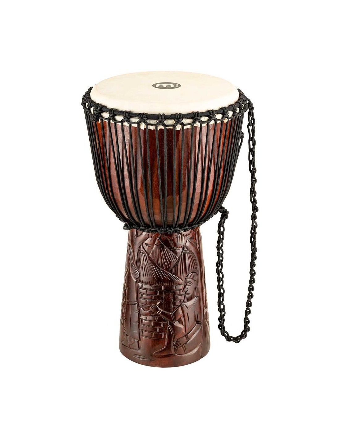 DJEMBE 'Djembé profesional de madera tamaño 12''. Equipado con parches de piel de cabra seleccionadas a mano y cuerdas de afinación de nylon para proporcionar una afinación óptima. Los impresionantes djembes de la serie Profesional de Meinl destacan por su arte gráfico tradicional y exótico tallados a mano desde una pieza sólida de madera.
