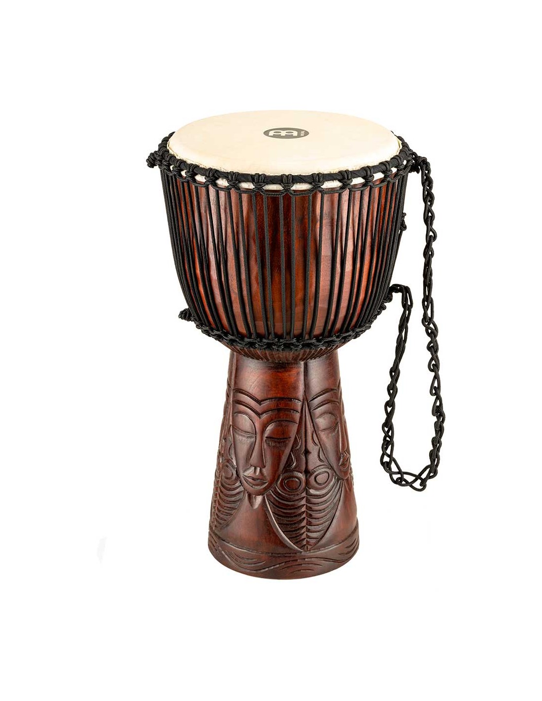 DJEMBE 'Djembé profesional de madera tamaño 12''. Equipado con parches de piel de cabra seleccionadas a mano y cuerdas de afinación de nylon para proporcionar una afinación óptima. Los impresionantes djembes de la serie Profesional de Meinl destacan por su arte gráfico tradicional y exótico tallados a mano desde una pieza sólida de madera.