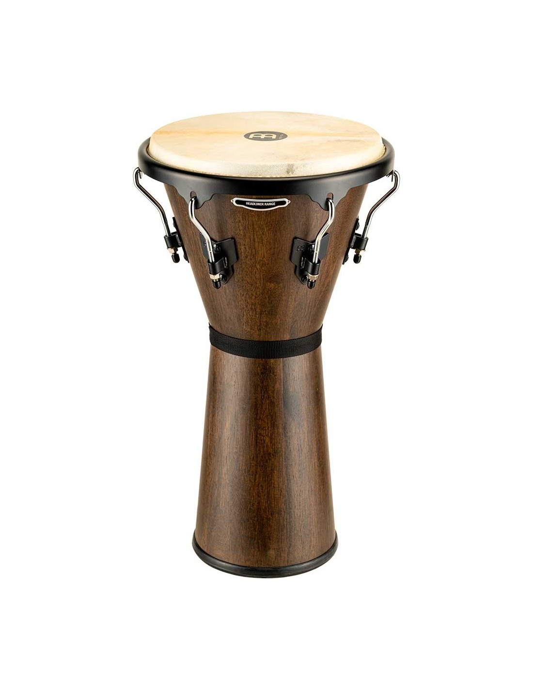 DJEMBE 'Djembé de madera 12 1/2''. Los Djembes Headliner producen un sonido clásico con bajos profundos y agudos explosivos. El diseño de los cascos y el montaje de los parches de piel de cabra seleccionados a mano. Esta forma hace que sea increíblemente fácil y cómodo tocar el instrumento acuñado entre las rodillas.