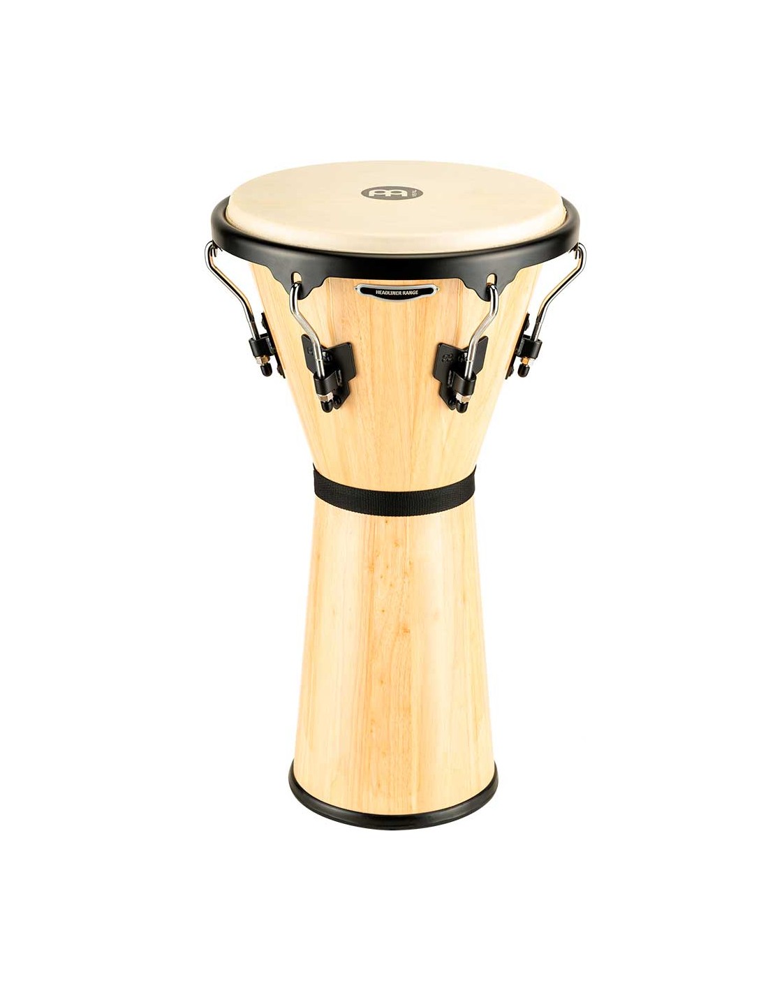 DJEMBE 'Djembé de madera 12 1/2''. Los Djembes Headliner producen un sonido clásico con bajos profundos y agudos explosivos. El diseño de los cascos y el montaje de los parches de piel de cabra seleccionados a mano. Esta forma hace que sea increíblemente fácil y cómodo tocar el instrumento acuñado entre las rodillas.