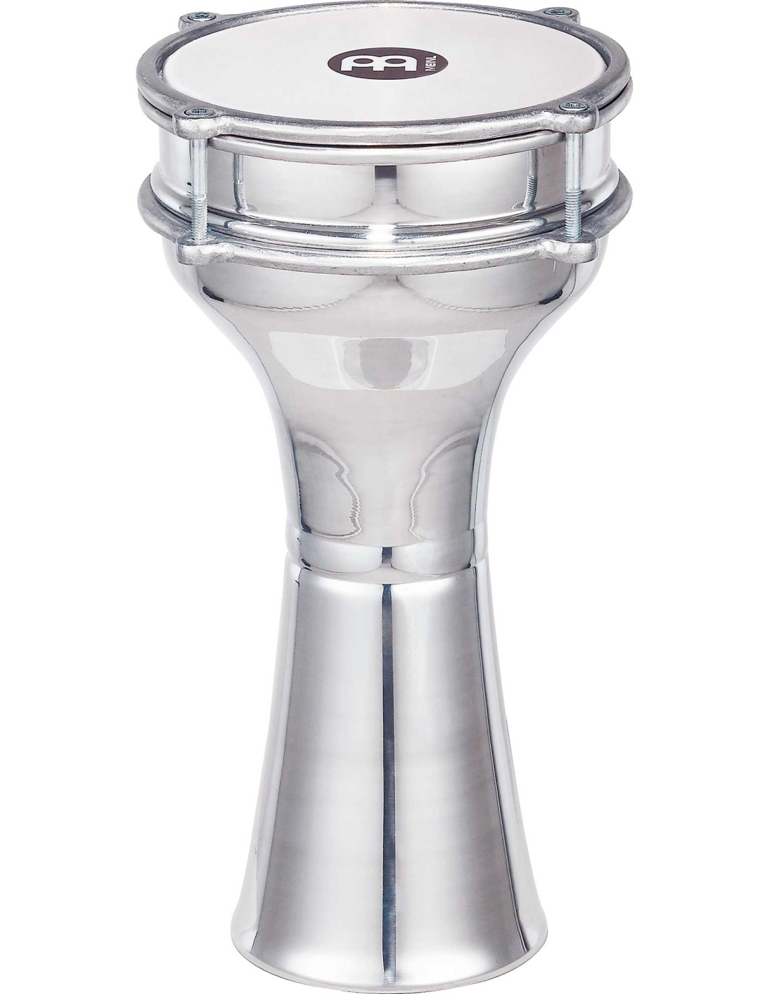 DOUMBEK 'Darbouka 6 1/2'' X 12 3/4''. Estilo turco. Fabricado en aluminio. Con parche sintético reemplazable (Repuesto no incluido). Color plateado. Incluye llave de afinación