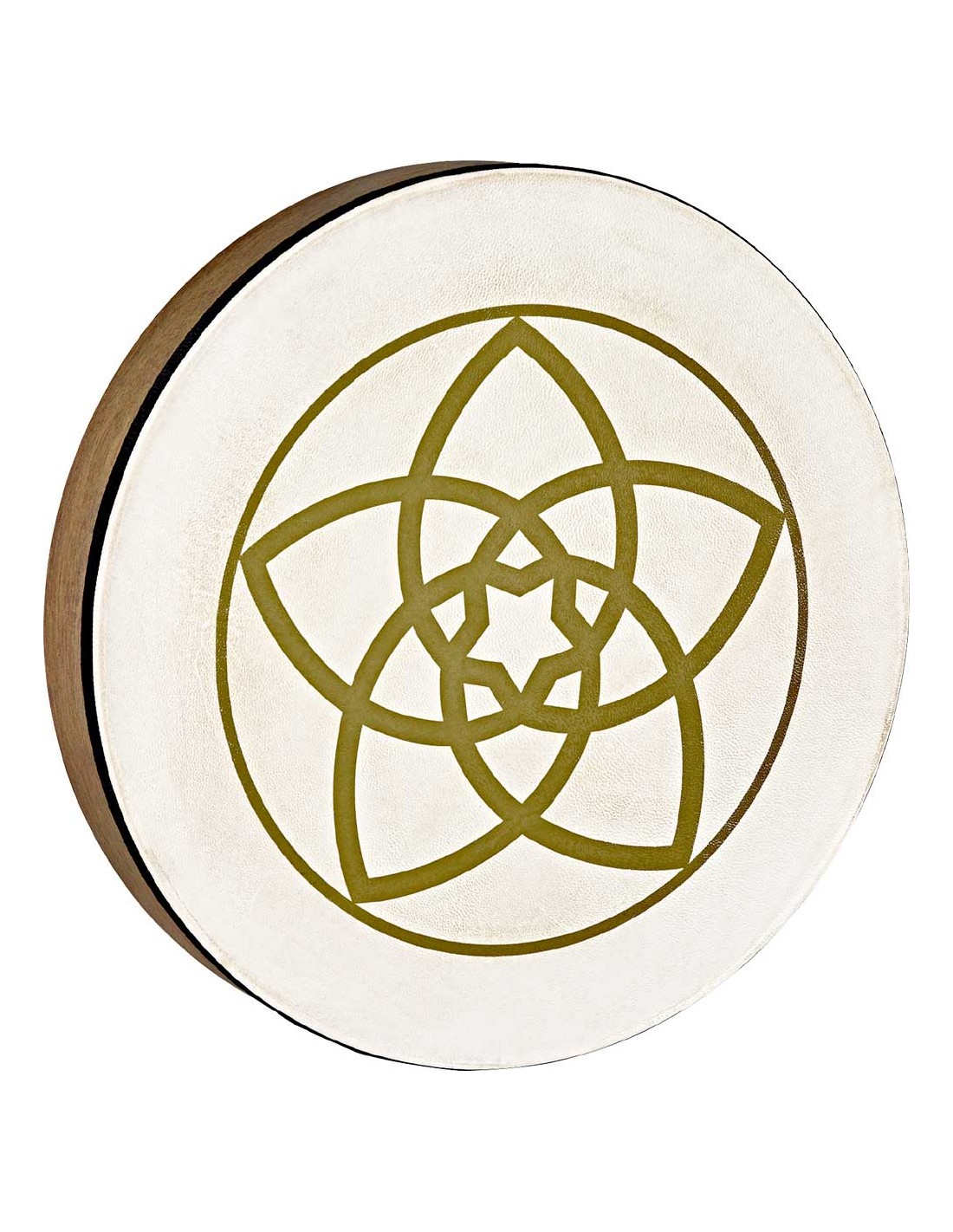 EFECTOS SONOROS 'HD16WB-VF Venusflower. Nuestros panderos están construidos sobre un cuerpo de roble de Siam y montan parches naturales de 16''. En esta ocasión el pandero presenta la Flor de Venus en la parte frontal del parche.'