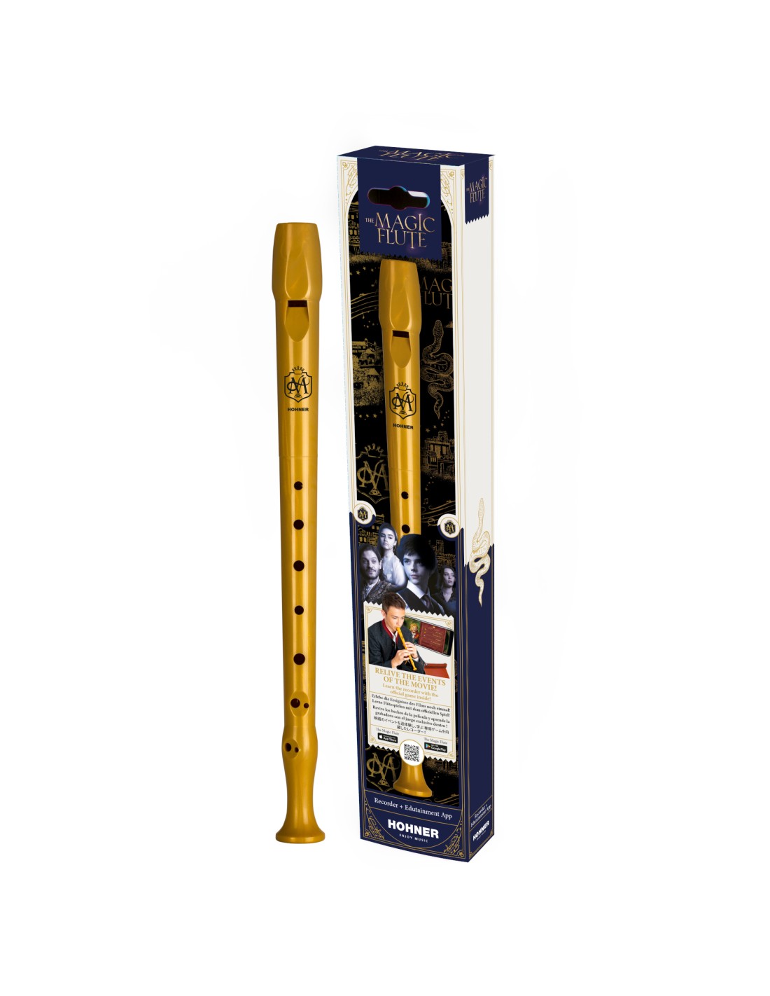 FLAUTA SOPRANO Este pack de HOHNER incluye una flauta dorada y la aplicación Classplash, y combina la emoción y la magia de la película The Magic Flute con la diversión interactiva y la alegría de aprender a tocar la flauta. Con la aplicación La Flauta Mágica, un juego desarrollado por educadores musicales, los niños y adolescentes pueden sumergirse en la historia de la película mientras tocan y aprenden un instrumento musical real: ¡la flauta dulce!Características: - Flauta dulce de color dorado con el logotipo de The Magic Flute.- Flauta dulce soprano en do con digitación alemana- Flauta de plástico fiable, robusta y resistente a los golpes- Sólida calidad de sonido- Construcción de una sola pieza de fácil cuidado, higiénica de limpiar- Incluye varilla limpiadora con esponja de limpieza y una funda de plástico reutilizable- Estuche de plástico, juego de pegatinas y vale de descarga para la aplicaciónEn la nueva película de fantasía La flauta mágica, producida por Roland Emmerich y dirigida por Florian Sigl, Tim Walker (Jack Wolfe), de 17 años, llega a los Alpes austríacos desde Londres para asistir al legendario internado de Mozart y comenzar sus estudios de canto. No sólo debe luchar para imponerse a sus compañeros, igualmente ambiciosos, sino que una noche descubre un portal secreto de hace siglos que le catapulta al fantástico mundo de la Flauta Mágica de Mozart.