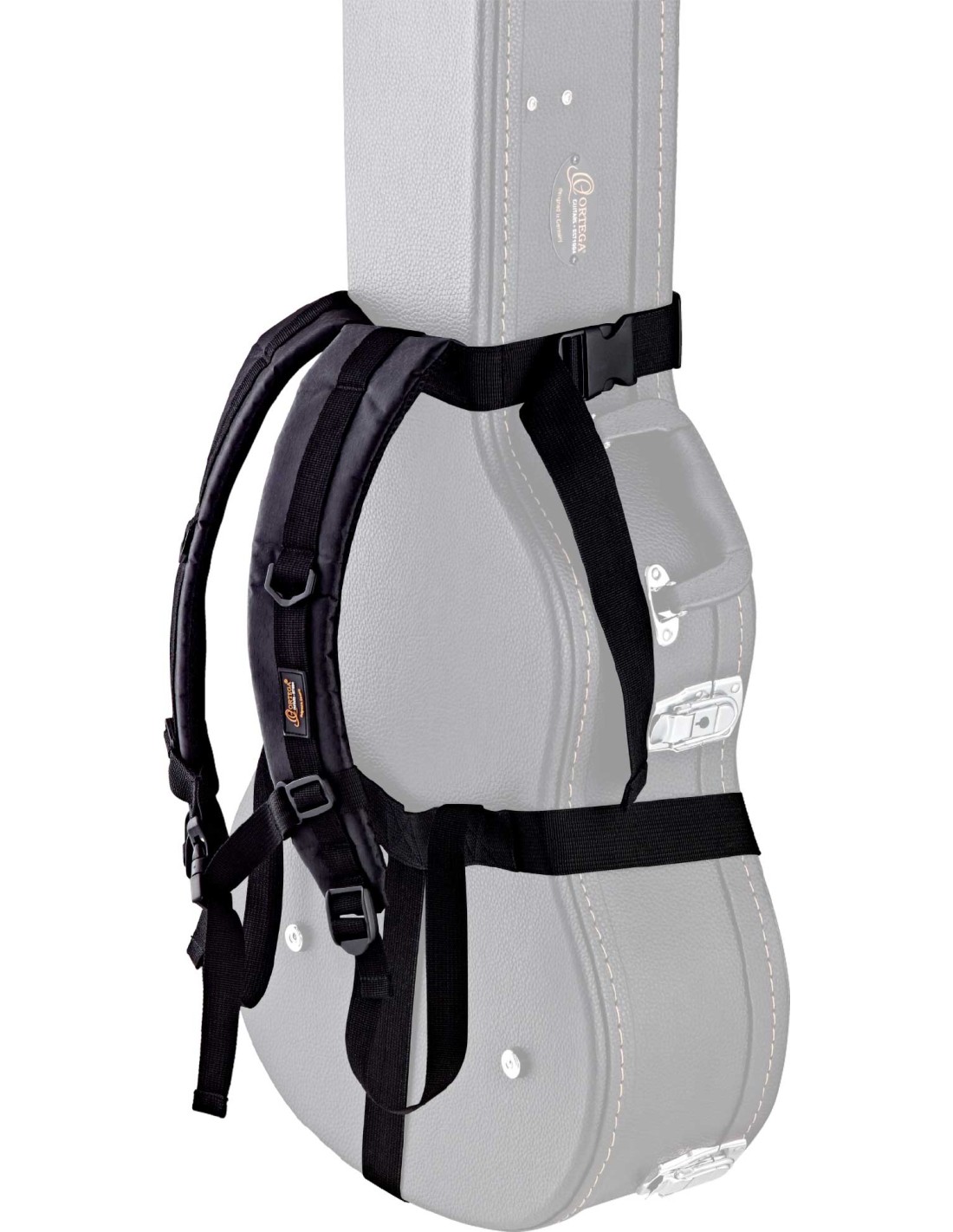 ACCESORIO PARA FUNDAS Y ESTUCHES Sistema back pack strap para convertir en mochila cualquier estuche de guitarra o bajo. Correas ajustables de 85 mm de anchura y grosor acolchado de 10mm. Facil de colocar gracias a clips de plástico. NO COMPATIBLE CON ESTUCHES RECTANGULARES