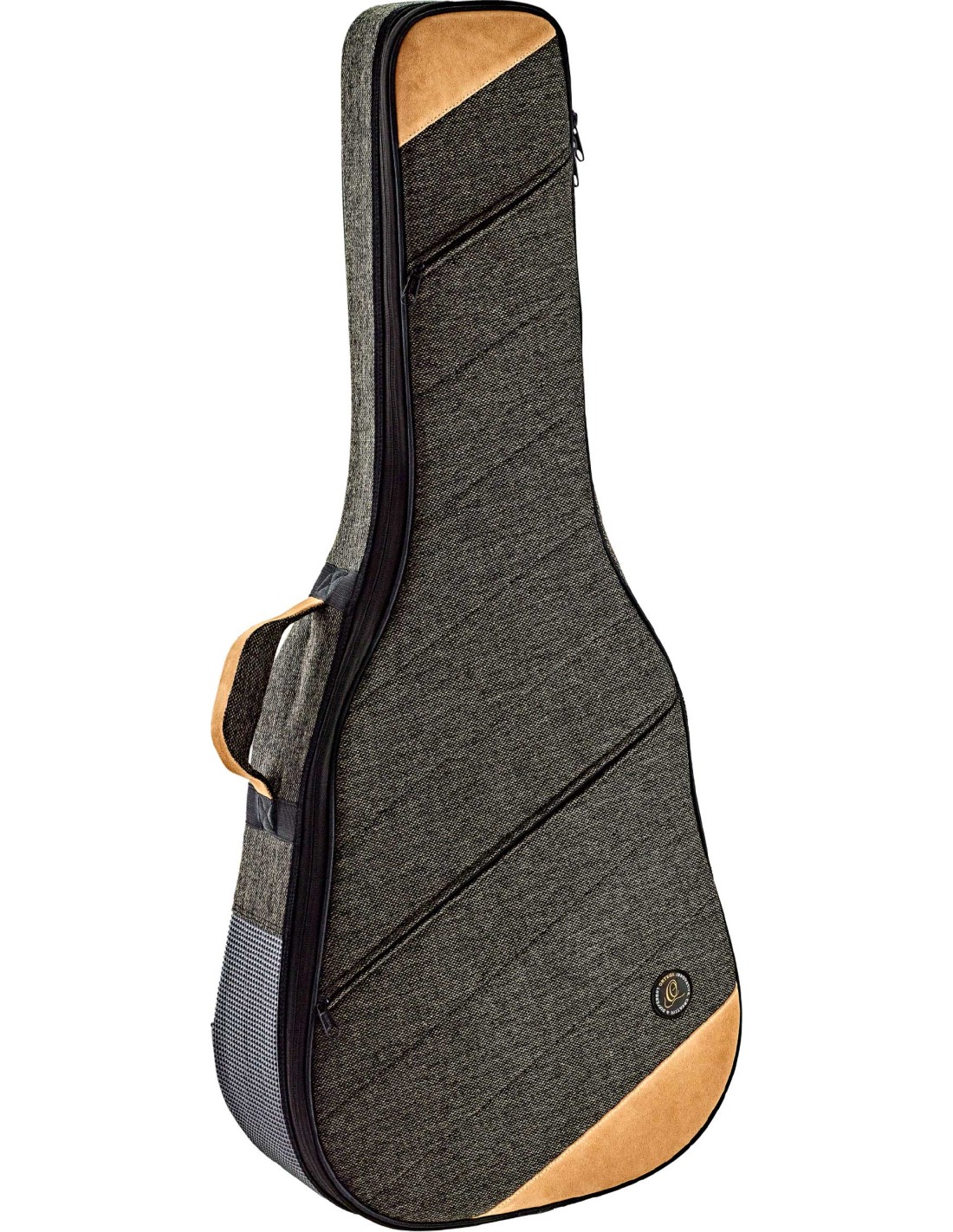 FUNDA PARA GUITARRA ACÚSTICA Funda semi rígida para guitarra acústica de gama profesional. Con acabado en algodón y ante. Protección extra interior. Con correas tipo mochila. Asa extra acolchada. Con compartimento exterior. Color Mocca