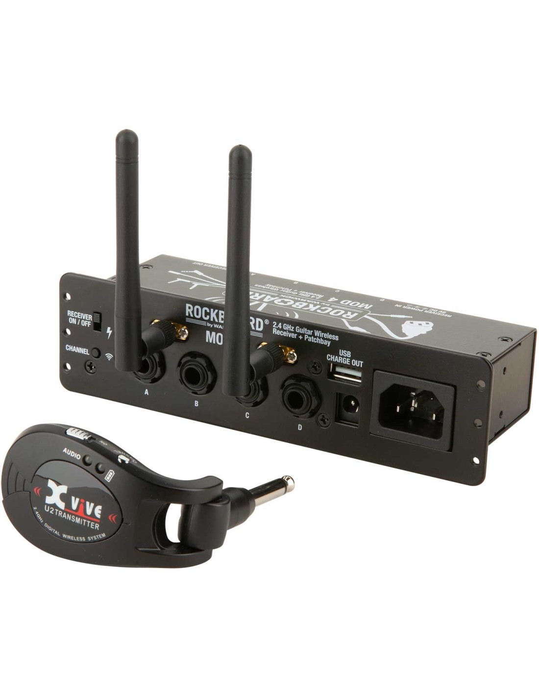 SOPORTE PEDALBOARD RockBoard MOD 4 y transmisor U2: receptor inalámbrico para guitarra de 2,4 GHz, transmisor patchbay TRS