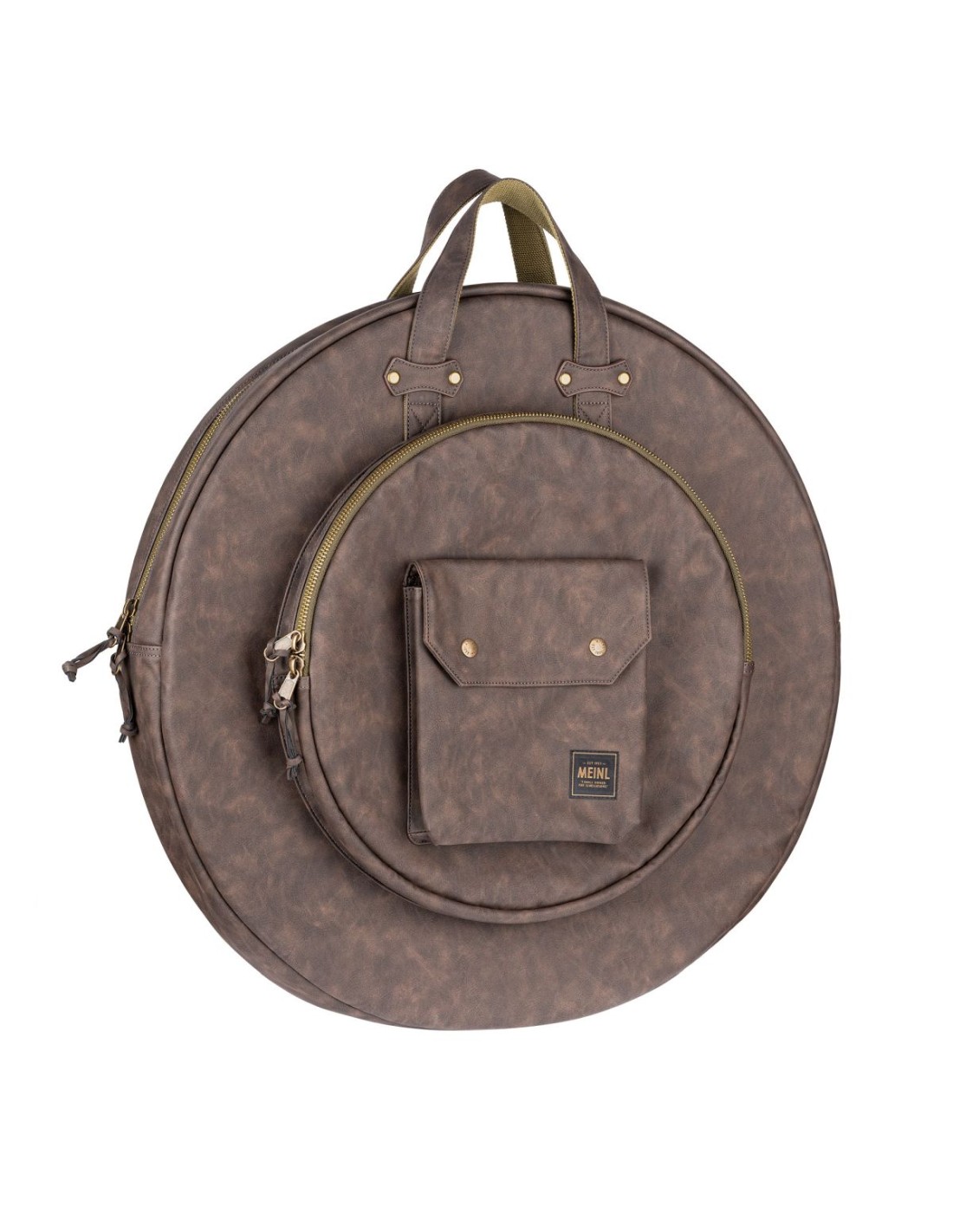 FUNDA PARA PLATOS DE BATERIA La bolsa para platillos Meinl Vintage Hyde tiene toda la facilidad de uso de una bolsa de gira con una apariencia clásica. Nuestro exterior de cuero sintético ultraduradero y el interior de lona de algodón de 24 onzas mantienen una vida útil de uso. Dentro del compartimento principal hay mucho espacio para colocar platillos de 22 pulgadas y viene con dos divisores de platillos de lona para evitar el contacto de metal con metal. El compartimento del charles de 15” incluye un divisor de lona. El bolsillo exterior de acceso rápido tiene el tamaño adecuado para accesorios o herramientas comunes y se cierra para asegurar sus artículos. Dos correas de mochila ajustables y asas de cuero sintético reforzadas le permiten transportar cómodamente cargas pesadas al concierto o al estudio. En la parte inferior de la bolsa hay una capa interna adicional de acolchado para proteger contra golpes, raspaduras y caídas menores. Entrar en el bolso es fácil gracias a las grandes lengüetas de cremallera que vienen con largos tiradores de cuero sintético. Los bolsos Meinl Vintage Hyde están diseñados para un estilo sobrio y atemporal, al mismo tiempo que son tan prácticos como siempre para cualquier tipo de baterista viajero. Disponible en negro, marrón oscuro o marrón claro.