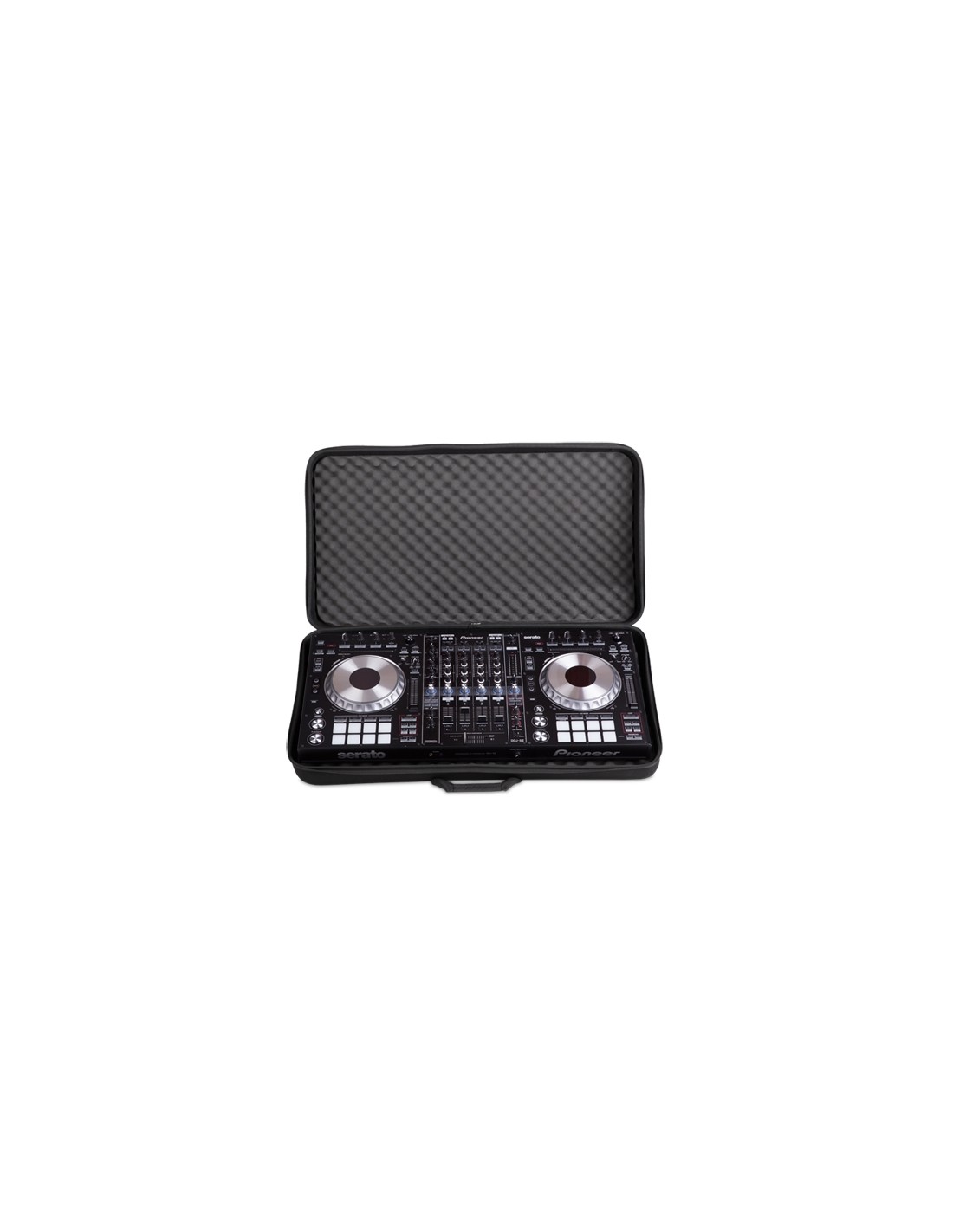 EAN 8717228279959 Color: Negro Weight 3,06 kg Dimenciones exteriores: 92.2 x 49.2 x 16 cm Dimensiones interiores: 91.1 x 48 x 11.3 cm Material: Durashock molded EVA foam Protección: Exterior de Nylon laminado resistenteal agua. Espuma tipo caja de huevos para la proteccion extra de faders, botones, pantallas y jogwheels Extra's: Tiradores de cremallera antideslizantes. Cómoda asa de transporte a mano y bandolera para colgar al hombro Válido para: DDJ-1000/ Pioneer DDJ-SZ, Numark NS7 II/ NS7 FX