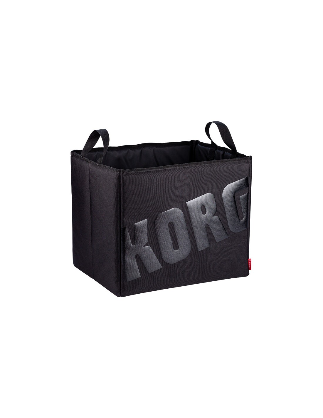 Disponible en dos acabados: tela negra con logotipo KORG en blanco o negro.