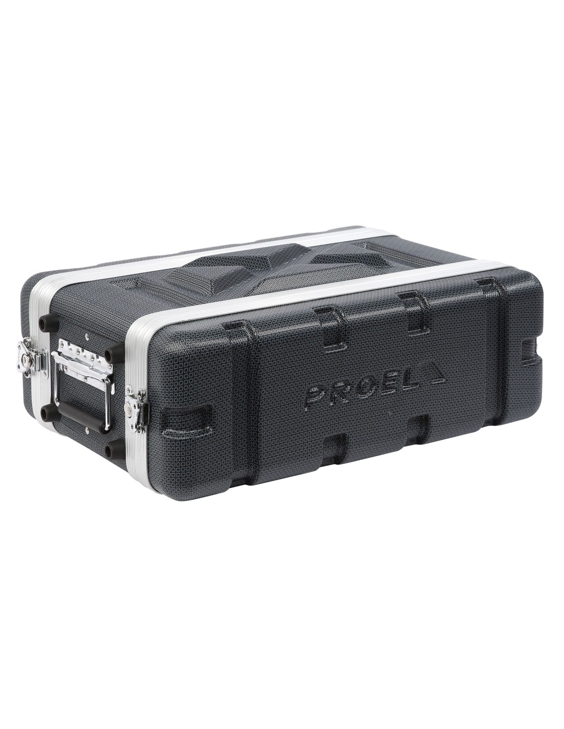 FLIGHT CASE PARA EQUIPO RACK 19' Maleta rack corta de 2 unidades. Profundidad interna del rack: 208 mm. Fabricada en polietileno FORCE con marcos del rack en aluminio. Tapas con 2 cierres y bolsillo interior. 2 asas laterales. Colornegro. Ideal para transportar sistemas de microfonía inalámbrica.