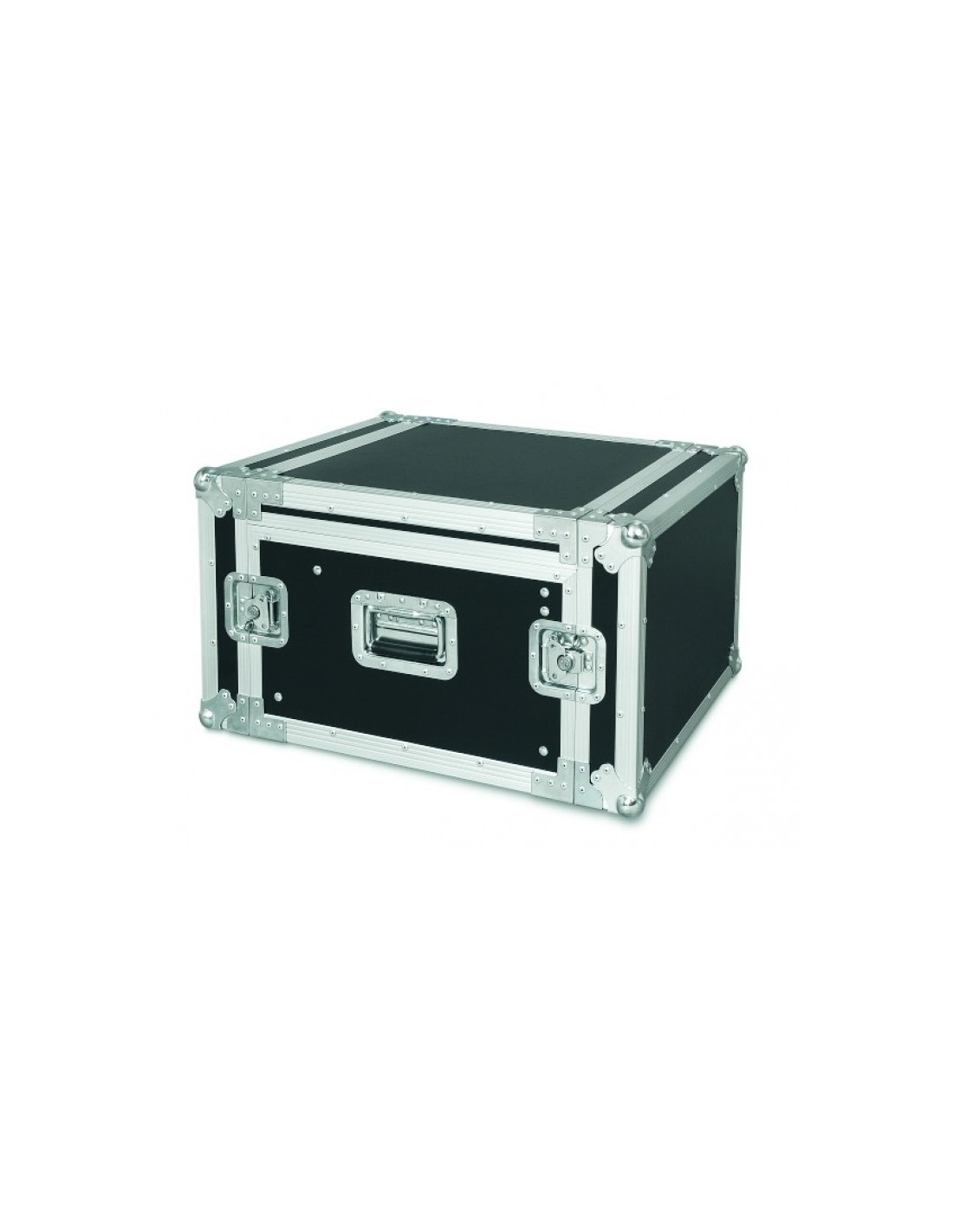 FLIGHT CASE PARA EQUIPO RACK 19' Flight case de 19' y formato rack con tapas frontal y posterior así como una superior que permite montar una mesa o cualquier otro accesorio. La altura es de 6 unidades y la profundidad 45 cm. El rack superior también monta 10 unidades donde podrás fijar lo que desees. Acabado en negro.