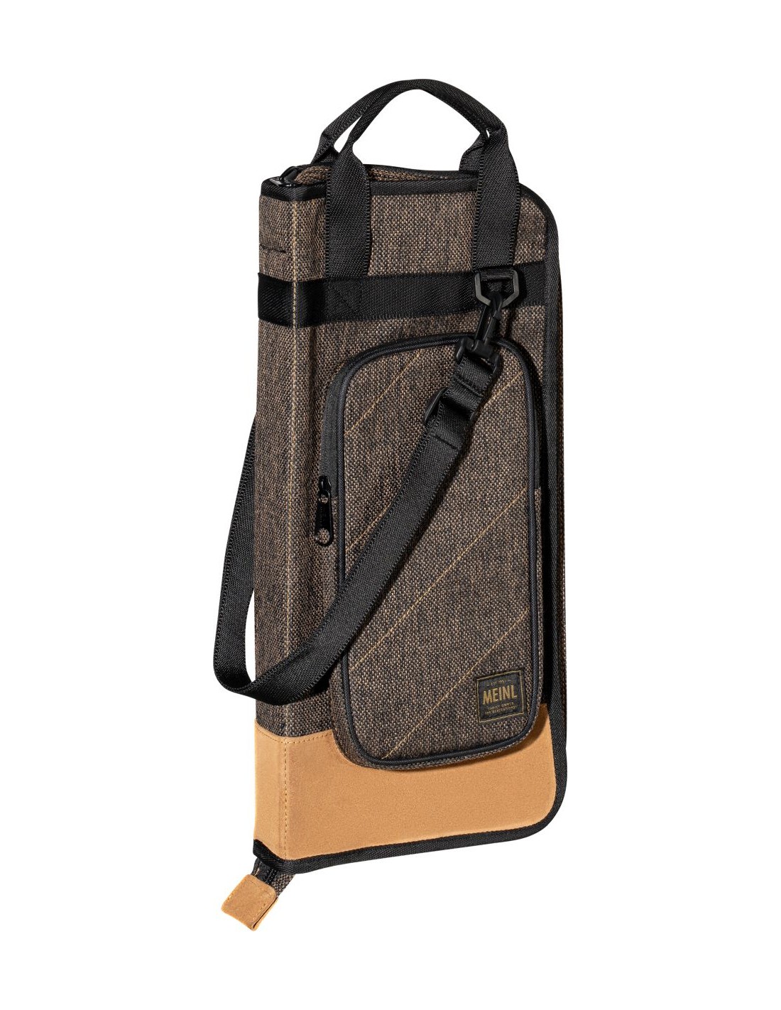 FUNDA PARA BAQUETAS Nuestro tejido exterior de poliéster 600D ultra duradero está reforzado con un revestimiento de PVC para mayor durabilidad. Además, cuenta con detalles de cuero de gamuza en la parte inferior. Dentro del compartimento principal hay cinco bolsillos para guardar una gran cantidad de baquetas, escobillas, rods y mazas (4 bolsillos grandes con fuelle y 1 bolsillo adicional). Además, hay cuatro bolsillos para accesorios de tamaño más pequeño para acomodar piezas o efectos de sonido. Este baquetero viene equipado con ganchos para tom base de longitud ajustable y correas para colocarlo en una posición abierto. Para tener un acceso rápido, el bolsillo exterior grande tiene el tamaño adecuado para accesorios o herramientas comunes, y se cierra con cremallera. Una correa para el hombro ajustable/extraíble te permite transportar cómodamente este baquetero al concierto o al estudio.